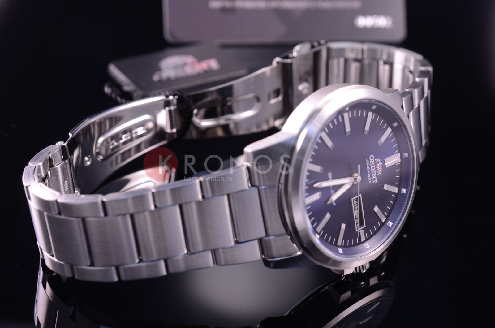 Аксессуар в серебристо-синей расцветке отличается высокой точностью хода благодаря автоматическому японскому механизму Orient 46943. Калибр сохраняет запас хода на 40 часов. Корпус выполнен из долговечной стали 316L с антикоррозионными свойствами. Стрелки имеют люминесцентную подсветкуЛюминесцентное покрытиеПозволяет считывать показания времени в темноте. Производители наносят на стрелки, часовые индексы, безель или поверхность циферблата светонакопительный состав, дающий холодное свечение., на метке 3 часов расположено окошко даты и дня недели.