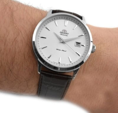 Лаконичный белый циферблат с серебристыми стрелками и индексами не имеет ни одной лишней детали. Идеальным дополнением стал чёрный ремешок из натуральной кожи. Часы оснащены японским автоматическим калибром, сохраняющим запас хода до 40 часов. Минеральное стекло устойчиво к появлению царапин. Надёжный корпус из стали 316L с антикоррозионными свойствами. Водозащита до 50 метров. Отображение текущей даты. Диаметр корпуса: 41 мм.