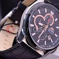Классические японские наручные мужские часы. Круглый корпус часов полностью выполнен из высокопрочной стали с антикоррозийными свойствам. Черный фон циферблат и стальные элементы дизайна. Водонепроницаемость часов составляет 10 ATM. Минеральное стекло, устойчивое к появлению царапин, хронограф. Часы прочно удерживаются на руке ремешком из натуральной кожи. Строгий и точный аксессуар.