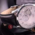 Сквозь прозрачное окошко на циферблате можно наблюдать за работой механизма часов, что добавляет часам дополнительную привлекательность. Секундная стрелка вынесена на отдельный циферблат, подчеркивая внимание к деталям и создавая гармоничный баланс между функциональностью и стилем.