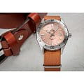 Циферблат часов выполнен в оранжевом цвете, что придаёт им яркий и современный вид. Индексы и стрелки покрыты Люминесцентным покрытиемЛюминесцентное покрытиеПозволяет считывать показания времени в темноте. Производители наносят на стрелки, часовые индексы, безель или поверхность циферблата светонакопительный состав, дающий холодное свечение., что обеспечивает хорошую читаемость в темноте.