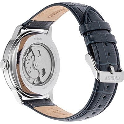 Оригинальные механические часы Orient Bambino RA-AK0806L представляют собой элегантное сочетание классического дизайна и современных технологий. Корпус диаметром 41,5 мм изготовлен из нержавеющей стали, что обеспечивает долговечность и привлекательный внешний вид. Циферблат синего цвета оснащён функцией день/ночь, которая отображает фазы Луны и время суток, добавляя уникальный шарм модели. Часы также оснащены функцией отображения даты в районе 3 часа, от отдельным циферблатом с днями недели, добавляя практичности к своему классическому дизайну. Часы защищены минеральным стекломМинеральное стеклоМинеральное стекло представляет собой искусственно выращенный минерал кварца. Такое стекло отличается особой устойчивостью к повреждениям и царапинам. Уступает по некоторым качествам сапфировому стеклу., обеспечивающим устойчивость к царапинам и надёжную защиту циферблата. Водозащита WR 30 (3 ATM) делает эти часы практичным выбором для повседневного использования. Дополняет образ синий кожаный ремешок, который не только стильный, но и комфортный для длительного ношения. Вес часов составляет всего 70 грамм, что делает их лёгкими и удобными для использования каждый день. Orient Bambino RA-AK0806L — это выбор тех, кто ценит точность, качество и уникальный дизайн в одном аксессуаре. Эти часы станут прекрасным дополнением как к повседневной, так и к формальной одежде, подчеркивая ваш стиль и индивидуальность.