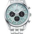 Модель Orient RA-TX0304L из коллекции Contemporary — это элегантный мужской хронограф, сочетающий современный дизайн и практичность. Корпус диаметром 40 мм выполнен из нержавеющей стали, подчеркивая сдержанный и универсальный стиль модели. Светло-голубой циферблат с тремя тёмными счётчиками создаёт эффект "ice panda", а стрелки и метки с люминесцентным покрытиемЛюминесцентное покрытиеПозволяет считывать показания времени в темноте. Производители наносят на стрелки, часовые индексы, безель или поверхность циферблата светонакопительный состав, дающий холодное свечение. обеспечивают отличную читаемость при любом освещении. Часы оснащены солнечным кварцевым механизмом Orient Cal. VS752, способным накапливать энергию и обеспечивать запас хода до 6 месяцев. Циферблат защищён сапфировым стекломСапфировое стеклоПрочный и надёжный материал из кристалла сапфира синтетического происхождения, характеризующийся особой твёрдостью и устойчивостью к царапинам и повреждениям., устойчивым к царапинам. Модель поддерживает функцию хронографаХронографФункция позволяет измерять отрезки времени с особой точностью: часы, минуты, секунды. Верным признаком хронографа является наличие на циферблате 3 дополнительных окошек-счётчиков. и отображение даты. Браслет выполнен из нержавеющей стали и дополнен раскладной застёжкойРаскладная застёжкаТакой тип застёжки используется только на браслетах из металла. Она никогда не раскрывается полностью, происходит разделение на 2 и более частей. Раскладывающая застёжка снизит вероятность потери часов к минимуму. с двойной защитой. Водонепроницаемость составляет 50 метров, что делает модель надёжной для повседневного использования. Orient RA-TX0304L — это продуманные часы для тех, кто ценит точность, надёжность и строгий, но выразительный внешний вид.