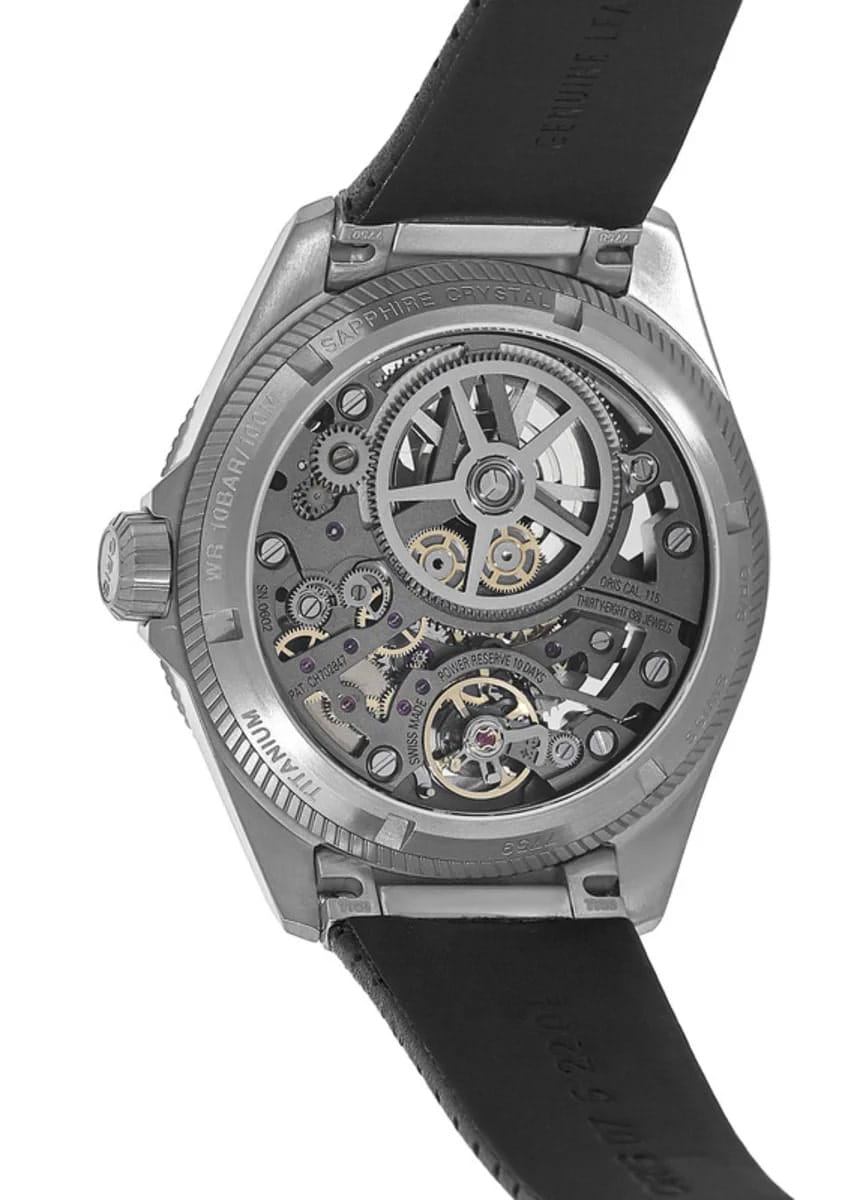 Откройте для себя ProPilot X Calibre 115, архитектурную красоту с титановым корпусом и браслетом, скелетонизированным циферблатом и 10-дневным запасом хода - характеристики, которые объединяет вечная радость независимого швейцарского механического часового дела. ProPilot X Calibre 115, шедевр современного часового искусства, в титановом корпусе 44 мм с черным кожаным ремнем. В них установлен завораживающий Calibre 115 - скелетонизированная версия 10-дневного калибра с ручным заводом, нелинейным индикатором запаса хода и малой секундной стрелкой.