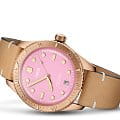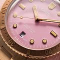 Часы Divers Sixty-Five "Cotton Candy" - это маяк радости. Корпус, безель, заводная головка полностью выполнены из бронзы, а циферблат окрашен в яркие цвета. Часы в 38-миллиметровом корпусе унисекс оснащены механизмом Swiss Made. Эти часы символизируют оптимизм и лучшие времена.