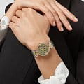 Яркие, классные часы. Зеленый циферблат с логотипом бренда украшен кристаллами Swarovski.Круглый корпус выполнен из нержавеющей стали с частичным IP покрытием цвета желтого золота и декорирован кристаллами по безелю. Прочное минеральное стекло устойчивое к мелким механическим повреждениям.