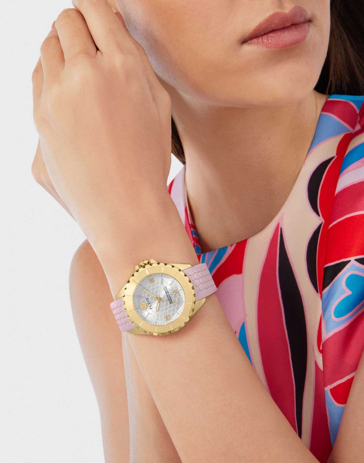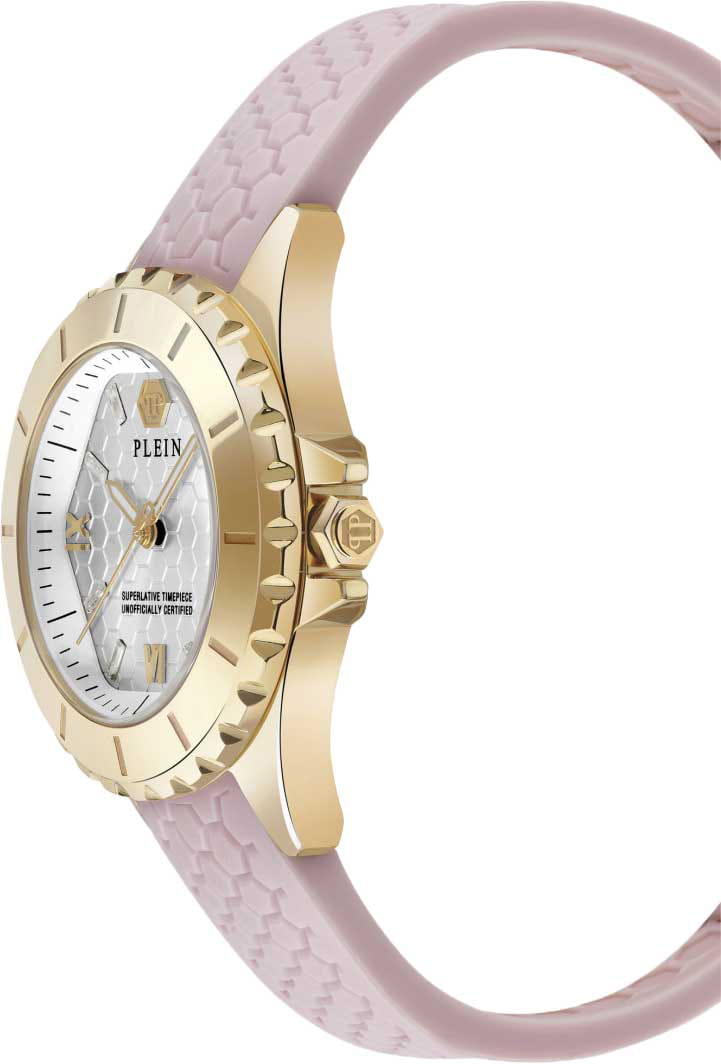 Женские часы Philipp Plein Heaven PWPOA0224 с надежным кварцевым механизмом. Корпус часов изготовлен из стали с IP-покрытиемIP-покрытиеМетод ионного напыления. Демонстрирует повышенную устойчивость к истиранию, окислению и химическим веществам. Под воздействием высокого давления и температуры около 1500°C молекулы металла надёжно соединяются с частицами корпуса часов.. Минеральное стеклоМинеральное стеклоМинеральное стекло представляет собой искусственно выращенный минерал кварца. Такое стекло отличается особой устойчивостью к повреждениям и царапинам. Уступает по некоторым качествам сапфировому стеклу. устойчивое к мелким механическим повреждениям. Влагозащита: 50 метров, позволит плавать, нырять и заниматься другими водными видами спорта. Стрелки и метки с люминесцентным покрытиемЛюминесцентное покрытиеПозволяет считывать показания времени в темноте. Производители наносят на стрелки, часовые индексы, безель или поверхность циферблата светонакопительный состав, дающий холодное свечение..