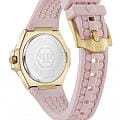 Женские кварцевые часы Philipp Plein Plein Royal Prestige PW4FA0225 — это стильное сочетание элегантности и современного дизайна. Изящный корпус выполнен из нержавеющей стали с PVD-покрытиемPVDУльтратонкое покрытие наносится в технике вакуумного напыления, сочетает в себе нитрид титана особой прочности со слоем золота или оксида хрома. Несёт в себе декоративную или защитную функцию. золотистого цвета, диаметром 33 мм, что придаст образу женственности и романтизма. Изысканный циферблат с метками в виде штрихов придает модели особый блеск. Циферблат защищен минеральным стекломМинеральное стеклоМинеральное стекло представляет собой искусственно выращенный минерал кварца. Такое стекло отличается особой устойчивостью к повреждениям и царапинам. Уступает по некоторым качествам сапфировому стеклу., обеспечивающий устойчивость к царапинам. Стрелки с люминесцентным покрытиемЛюминесцентное покрытиеПозволяет считывать показания времени в темноте. Производители наносят на стрелки, часовые индексы, безель или поверхность циферблата светонакопительный состав, дающий холодное свечение.. Часы оснащены надежным кварцевым механизмом. Силиконовый ремешок на стандартной застёжке, гарантирует комфортное и безопасное ношение. Класс водозащиты: 50 метров позволит защитить корпус от случайных брызг или капель дождя. Phlipp Plein — отличный выбор для тех, кто ценит яркость и качество.