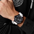 Мужские кварцевые часы со стальным карбоновым покрытием циферблата Philipp Plein The Skull Carbon Fiber PWAAA1822, кварцевый механизм с высокой точностью. Класс водозащиты: 50 метров, позволит защитить корпус от случайных брызг или капель дождя. Круглый корпус выполнен из нержавеющей стали. Заводная головка с защитой. Белый силиконовый ремешок шириной 22 мм, стандартная застежка.
