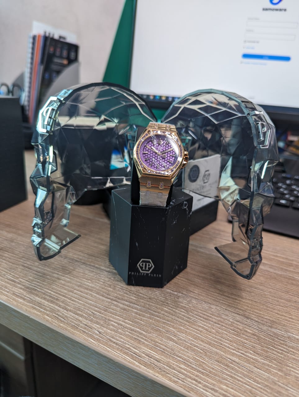 Женские немецкие кварцевые часы Philipp Plein Extreme Lady PWJAA0922, кварцевый механизм с высокой точностью. Класс водозащиты: 50 метров, позволит защитить корпус от случайных брызг или капель дождя. Корпус часов изготовлен из стали с IP-покрытиемIP-покрытиеМетод ионного напыления. Демонстрирует повышенную устойчивость к истиранию, окислению и химическим веществам. Под воздействием высокого давления и температуры около 1500°C молекулы металла надёжно соединяются с частицами корпуса часов. цвета розовое золото. Прочное минеральное стеклоМинеральное стеклоМинеральное стекло представляет собой искусственно выращенный минерал кварца. Такое стекло отличается особой устойчивостью к повреждениям и царапинам. Уступает по некоторым качествам сапфировому стеклу. устойчивое к мелким механическим повреждениям. Застёжка бабочка с кнопкамиЗастёжка "бабочка"Такой вид застёжки дополняется предохранителями, помогающими избежать случайного раскрытия браслета. Обладают изящным исполнением.