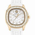 Philipp Plein THE $PECTRE LADY PWTAA0924 - дерзкое заявление любви к роскоши и бунтарскому стилю. Диаметр корпуса из прочной нержавеющей стали с PVD-покрытиемPVDУльтратонкое покрытие наносится в технике вакуумного напыления, сочетает в себе нитрид титана особой прочности со слоем золота или оксида хрома. Несёт в себе декоративную или защитную функцию. равен 38 мм. Силиконовый ремешок на стандартной застёжке обеспечивает надёжную фиксацию и комфортное ношение. Минеральное стеклоМинеральное стеклоМинеральное стекло представляет собой искусственно выращенный минерал кварца. Такое стекло отличается особой устойчивостью к повреждениям и царапинам. Уступает по некоторым качествам сапфировому стеклу. защищает циферблат от царапин. Люминесцентное покрытиеЛюминесцентное покрытиеПозволяет считывать показания времени в темноте. Производители наносят на стрелки, часовые индексы, безель или поверхность циферблата светонакопительный состав, дающий холодное свечение. стрелок и меток позволит следить за временем даже в полной темноте. БезельБезельВнешний ободок, закрепляющий стекло. В спортивных часах так называется поворотное кольцо с делениями на циферблате, выполняет роль таймера – замеряет отрезки времени на шкале. Неподвижный безель – элемент декора. Однонаправленно вращающийся безель на дайверских часах позволяет фиксировать моменты погружения и выныривания на поверхность. инкрустирован кристаллами Preciosa. Влагозащита: 50 метров, позволит защитить корпус от случайных брызг или капель дождя. Идеальный аксессуар для тех, кто ценит индивидуальность и не боится выделяться из толпы.