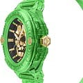 Модель Philipp Plein PWWAA0924 из коллекции The $kull Scuba Duba Edition — это выразительный аксессуар, сочетающий в себе смелый дизайн и функциональность. Корпус диаметром 44 мм выполнен из зеленого пластика, подчёркивая современный стиль модели. Чёрный циферблат с фирменным черепом Philipp Plein придаёт часам характерный вид. Часы оснащены кварцевым механизмом, обеспечивающим точный ход. Циферблат защищён минеральным стекломМинеральное стеклоМинеральное стекло представляет собой искусственно выращенный минерал кварца. Такое стекло отличается особой устойчивостью к повреждениям и царапинам. Уступает по некоторым качествам сапфировому стеклу., устойчивым к царапинам. Установлена классическая застёжка-пряжка, обеспечивая надёжную фиксацию на запястье. Модель обладает водонепроницаемостью до 5 ATM, что делает её подходящей для повседневного использования. Philipp Plein — это не просто часы, а выражение индивидуальности и стиля, идеально подходящее для тех, кто стремится выделиться из толпы.