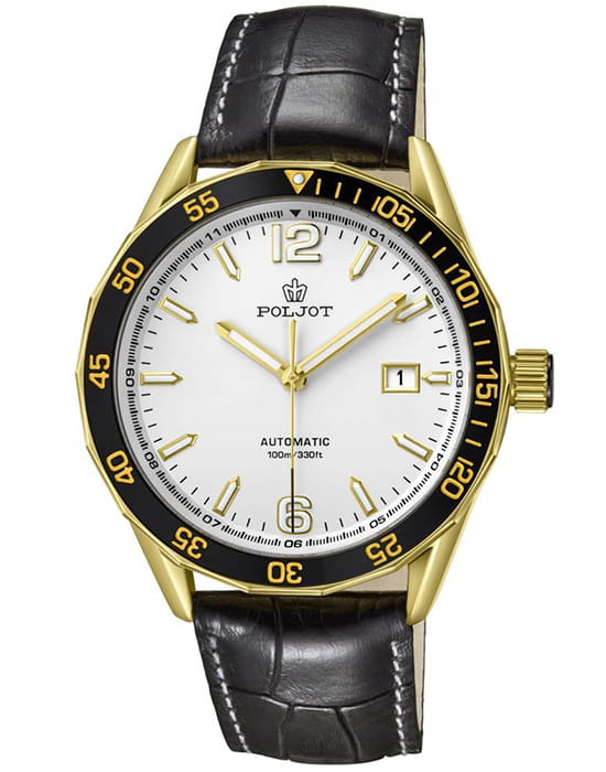 Poljot NH35A.186263 — надёжные механические мужские часы с автоподзаводом, сочетающие техническую точность и выразительный спортивный стиль. Корпус из нержавеющей стали  с PVD-покрытиемPVDУльтратонкое покрытие наносится в технике вакуумного напыления, сочетает в себе нитрид титана особой прочности со слоем золота или оксида хрома. Несёт в себе декоративную или защитную функцию. подчёркивает прочность конструкции, а насыщенный циферблат с акцентами на стрелках и метках придаёт модели динамичный и современный облик. БезельБезельВнешний ободок, закрепляющий стекло. В спортивных часах так называется поворотное кольцо с делениями на циферблате, выполняет роль таймера – замеряет отрезки времени на шкале. Неподвижный безель – элемент декора. Однонаправленно вращающийся безель на дайверских часах позволяет фиксировать моменты погружения и выныривания на поверхность. с PVD-покрытиемPVDУльтратонкое покрытие наносится в технике вакуумного напыления, сочетает в себе нитрид титана особой прочности со слоем золота или оксида хрома. Несёт в себе декоративную или защитную функцию.. Внутри установлен проверенный японский механизм SEIKO NH35, обеспечивающий стабильную работу и плавный ход секундной стрелки. Окно даты добавляет функциональности, а широкие метки с люминесцентным покрытиемЛюминесцентное покрытиеПозволяет считывать показания времени в темноте. Производители наносят на стрелки, часовые индексы, безель или поверхность циферблата светонакопительный состав, дающий холодное свечение. обеспечивают отличную читаемость даже в темноте. Прочное минеральное стеклоМинеральное стеклоМинеральное стекло представляет собой искусственно выращенный минерал кварца. Такое стекло отличается особой устойчивостью к повреждениям и царапинам. Уступает по некоторым качествам сапфировому стеклу. защищает циферблат от царапин, а ремешок из натуральной кожи с контрастной прострочкой гарантирует комфорт и надёжную посадку. Poljot — часы с характером, созданные для тех, кто ценит точность, качество и спортивную уверенность в каждой детали.