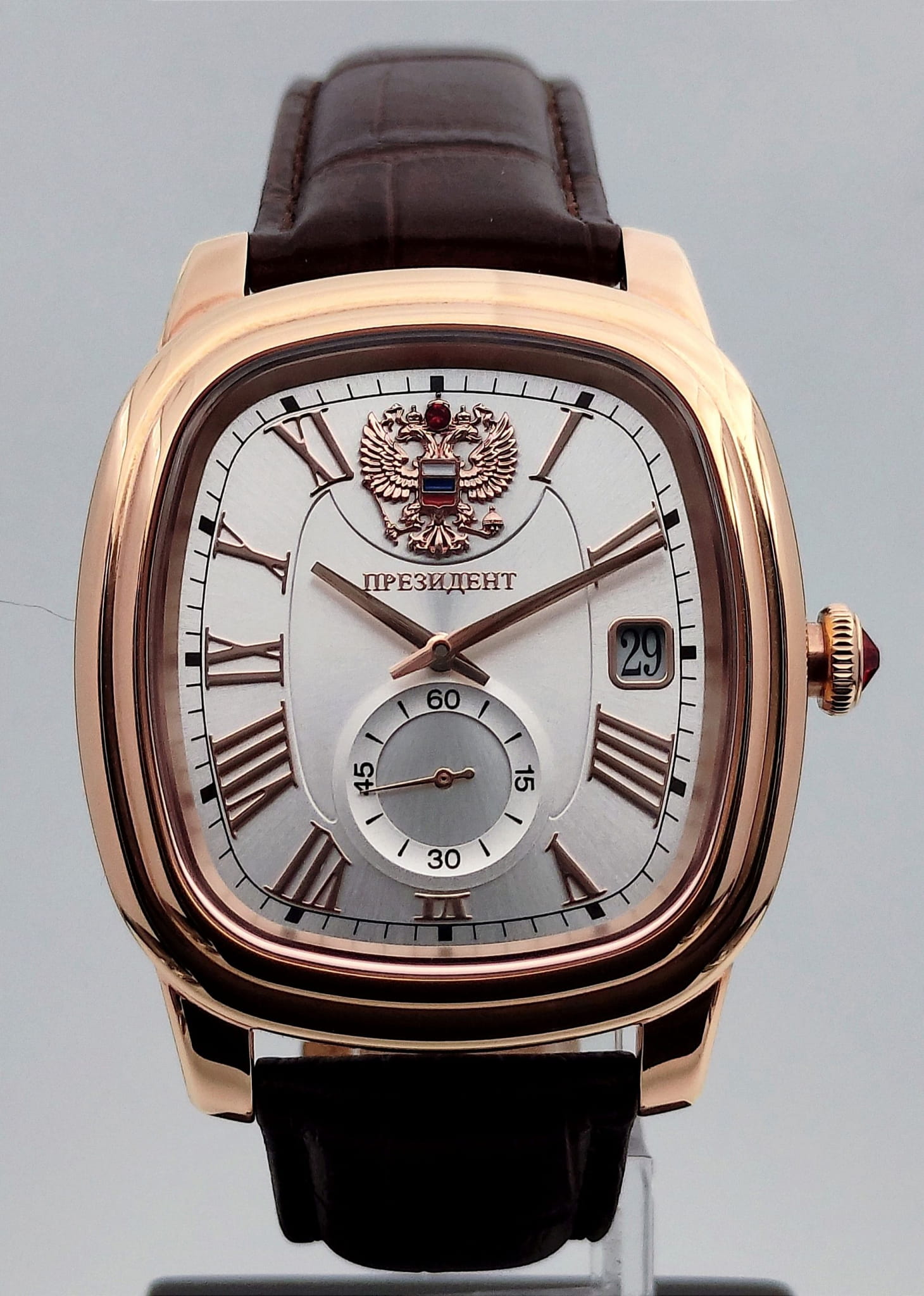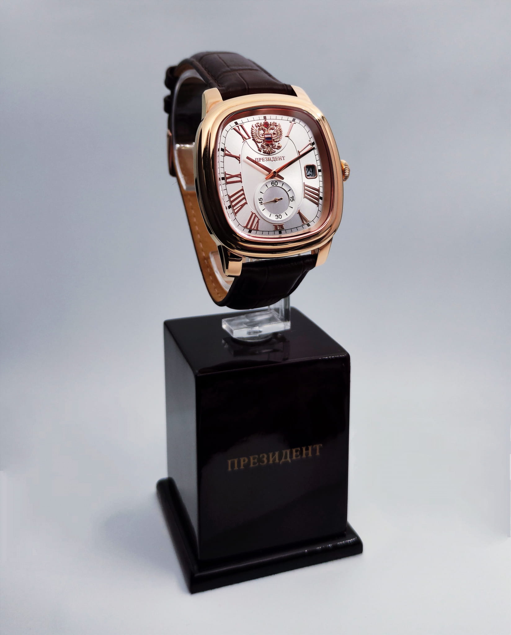 Часы «Президент» модели 3709070 — это мужские кварцевые наручные часы, сочетающие элегантный дизайн и надёжность. Механизм: японский кварцевый механизм Miyota GP11, обеспечивающий высокую точность. Функции: часы, минуты, секунды и дата. Корпус: из нержавеющей стали с PVD-покрытиемPVDУльтратонкое покрытие наносится в технике вакуумного напыления, сочетает в себе нитрид титана особой прочности со слоем золота или оксида хрома. Несёт в себе декоративную или защитную функцию. розового золота, размером 41 мм х 38 мм, толщиной 9,8 мм. Стекло: сапфировоеСапфировое стеклоПрочный и надёжный материал из кристалла сапфира синтетического происхождения, характеризующийся особой твёрдостью и устойчивостью к царапинам и повреждениям., устойчивое к царапинам. Водонепроницаемость: 5 ATM (50 метров), подходящая для повседневного использования. Ремешок: кожаный, шириной 20 мм, с классической застёжкой. Эти часы выпущены ограниченным тиражом в 350 экземпляров, что подчёркивает их эксклюзивность и статус.