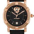 Мужские механические часы Русское Время Президент — это классический аксессуар, выполненный в стиле с символикой и рисунком. Модель оснащена аналоговым циферблатом с стрелками, что делает её универсальной для повседневного использования. Защиту механизма обеспечивает минеральное стеклоМинеральное стеклоМинеральное стекло представляет собой искусственно выращенный минерал кварца. Такое стекло отличается особой устойчивостью к повреждениям и царапинам. Уступает по некоторым качествам сапфировому стеклу., устойчивое к мелким повреждениям. Часы имеют круглую форму и изготовлены из стали, а браслет — из натуральной кожи чёрного цвета. Корпус диаметром 37 мм дополнен гербом России, что подчёркивает национальную принадлежность и стиль. Механизм калибра Miyota 8215 с автоподзаводом гарантирует надёжность и точность хода. Водонепроницаемость позволяет использовать модель в повседневных условиях — при мытье рук или под лёгким дождём. Эти часы станут универсальным аксессуаром для тех, кто ценит сочетание традиций, качества и эстетики — идеальный выбор для повседневной носки и торжественных случаев.
