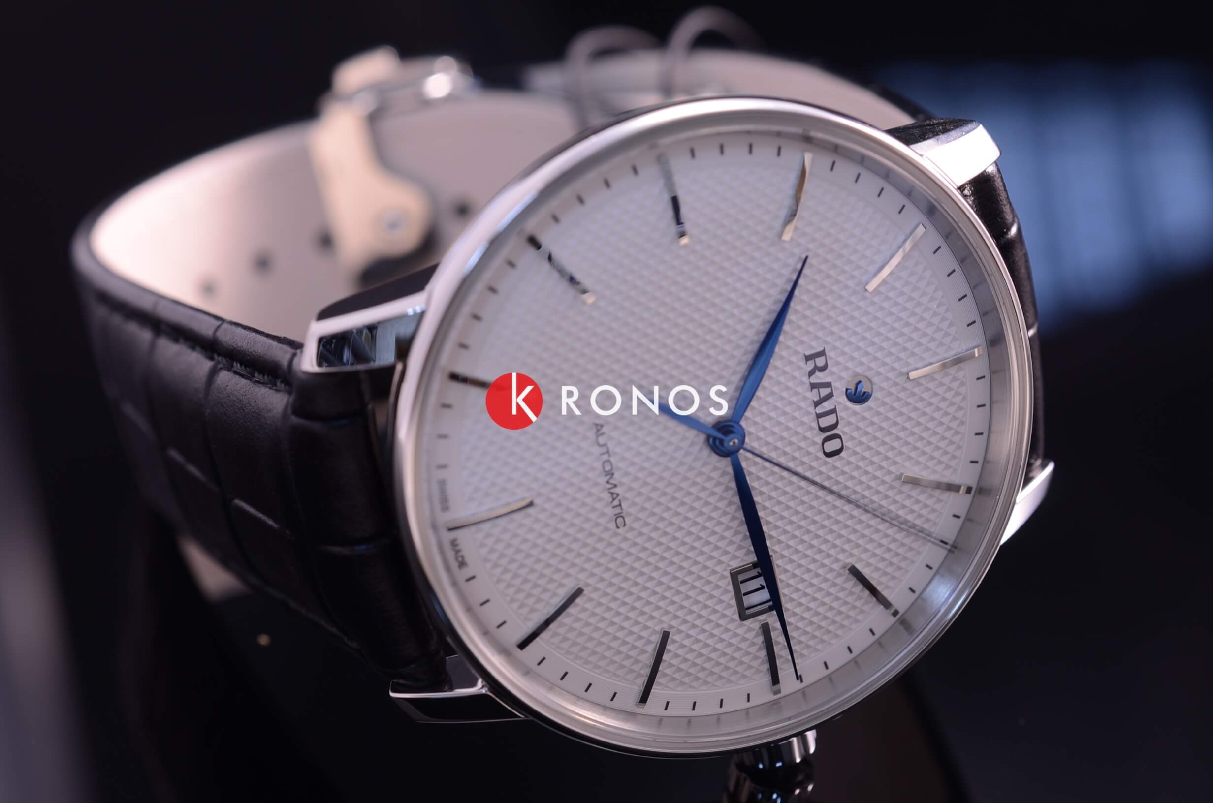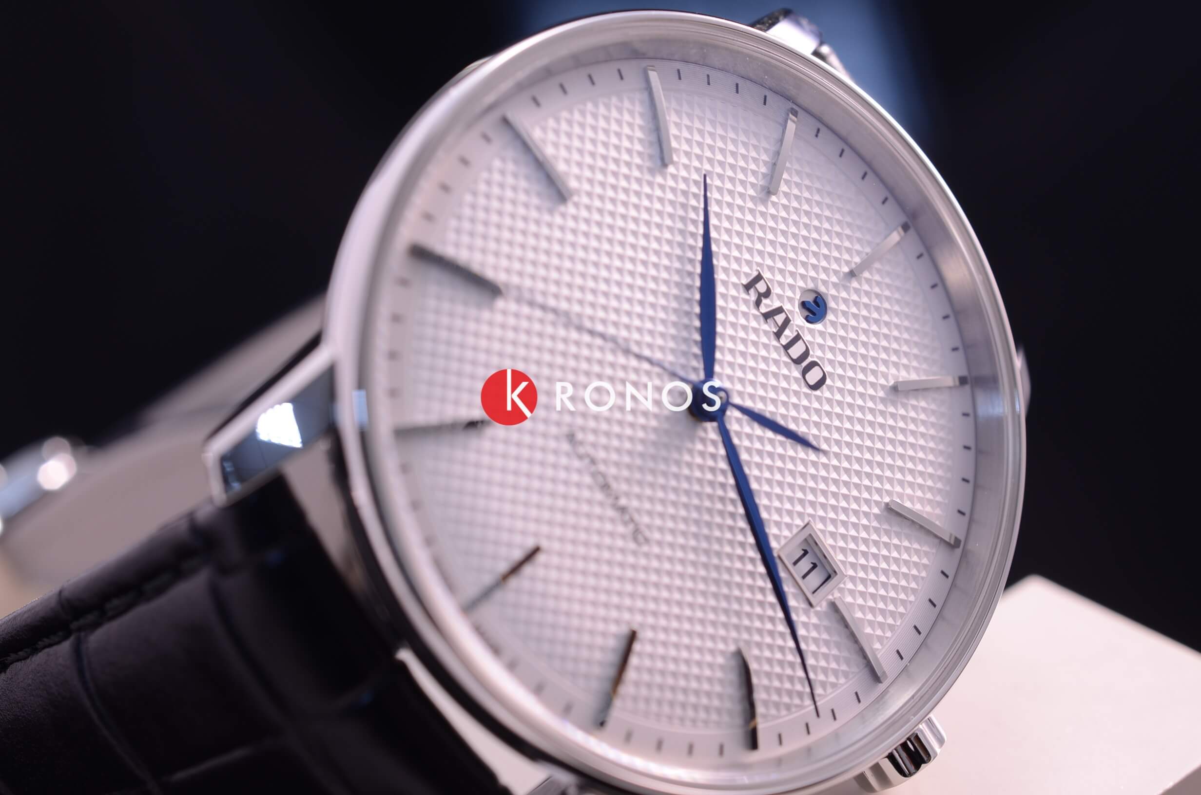 Лаконичный белый циферблат имеет оригинальный узор, такое исполнение привнесёт в классический стиль строгого пиджака долю эксклюзивности. В качестве цветового акцента используются яркие синие стрелки. Наручные часы с автоподзаводом имеют швейцарский калибр ETA C07.611, сохраняющий запас хода на 80 часов. Стекло из сапфира с антибликовым покрытием. Чёрный ремешок из натуральной кожи. Диаметр корпуса: 41 мм.