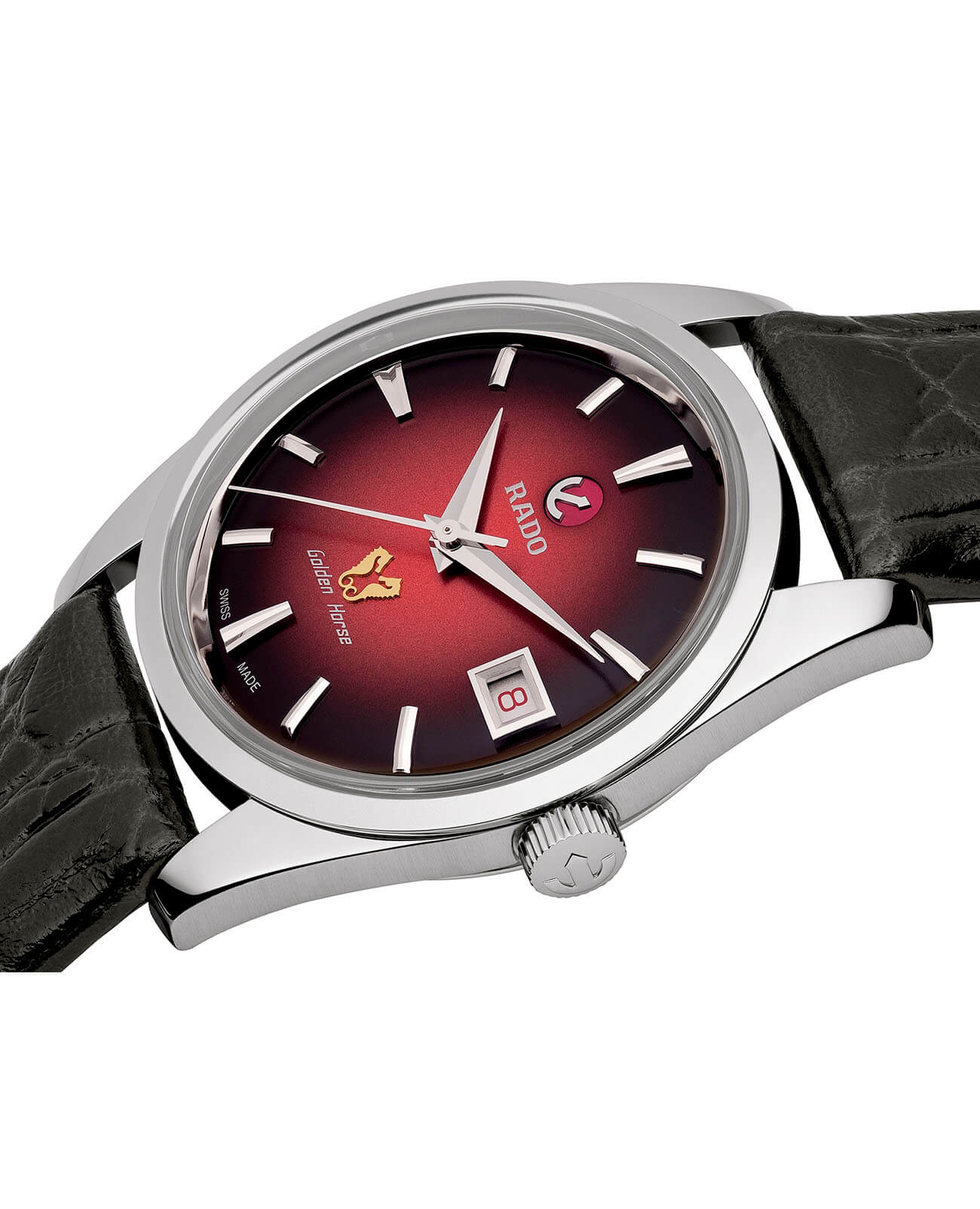 Брендовая модель с характерной эмблемой, изображающей морских коньков, стильно смотрится на мужском запястье. Надёжный корпус выполнен из стали 316L с антикоррозионными свойствами, оригинальный безельБезельВнешний ободок, закрепляющий стекло. В спортивных часах так называется поворотное кольцо с делениями на циферблате, выполняет роль таймера – замеряет отрезки времени на шкале. Неподвижный безель – элемент декора. Однонаправленно вращающийся безель на дайверских часах позволяет фиксировать моменты погружения и выныривания на поверхность. изготовлен из инновационного материала CeramosCeramosМатериал являет собой инновационное сочетание высокотехнологичной керамики и сплава металла. Он объединяет керамическую устойчивость к царапинам и металлический роскошный блеск. . Часы с чёрно-красным градиентом циферблата комплектуются автоматическим механизмом ETA C07.611, сохраняющим запас хода до 80 часов. Задняя крышка с оригинальной гравировкой. Антибликовое покрытие сапфирового стекла, устойчивого к царапинам. Водонепроницаемость 5 бар. Чёрный ремешок из натуральной кожи. Окошко даты. Диаметр корпуса: 36,5 мм.
