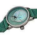 Аксессуар премиальной категории сразу бросается в глаза благодаря насыщенному изумрудному исполнению. Отдельную привлекательность представляет собой узорчатый циферблат с перламутровой вставкой, декорированный 21 бриллиантами в 0,060 карат. Корпус и безель сделаны из плазменной керамикиВысокотехнологичная плазменная керамикаИнновационный материал, технология запатентована. Выплавление керамики осуществляется в печи при 20 000 °C, белоснежный материал под воздействием ультравысокой температуры приобретает уникальный блеск, присущий металлам., что обеспечивает максимально комфортное ношение. Кварцевый механизм ETA F05.841. Сапфировое стекло с антибликовой поверхностью. Задняя крышка с гравировкой. Кожаный ремешок из натурального материала. Миниатюрное окошко отображает фазы луны. Диаметр корпуса: 35 мм.
