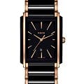 Наручные часы привлекают чёткими геометрическими формами, стильный прямоугольный циферблат с удлинёнными индексами точно оценят любители классики и элегантности. Модель выполнена из нержавеющей стали со вставками из высокотехнологичной керамикиВысокотехнологичная керамикаИнновационный запатентованный Rado материал с гладкой или матовой поверхностью. Керамика за счёт кристаллической структуры обладает повышенной устойчивостью от возникновения царапин. Материал способен принимать температуру тела человека, обеспечивая невероятный комфорт при ношении.. За высокую точность хода отвечает кварцевый калибр ETA E61.111. Стекло из сапфира. PVD-покрытиеPVDУльтратонкое покрытие наносится в технике вакуумного напыления, сочетает в себе нитрид титана особой прочности со слоем золота или оксида хрома. Несёт в себе декоративную или защитную функцию. цвета розовое золото. Апертура даты. Габариты: 31 x 41,1 x 7,5 мм.