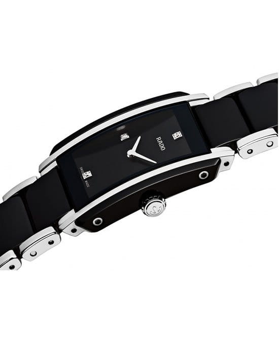 Наручным часам в чёрно-серебристом оформлении присущ роскошный стиль, изысканности добавляют 4 бриллианта в 0,026 карат, устоять перед их сиянием просто невозможно. Оригинальный браслет имеет высокопрочные вставки из высокотехнологичной керамикиВысокотехнологичная керамикаИнновационный запатентованный Rado материал с гладкой или матовой поверхностью. Керамика за счёт кристаллической структуры обладает повышенной устойчивостью от возникновения царапин. Материал способен принимать температуру тела человека, обеспечивая невероятный комфорт при ношении.. Модель комплектуется кварцевым механизмом ETA 976.001 с высокой точностью хода. Сапфировое стекло противостоит образованию царапин. Водостойкость 50 метров. Габариты: 22,7 x 33,1 x 6,5 мм.