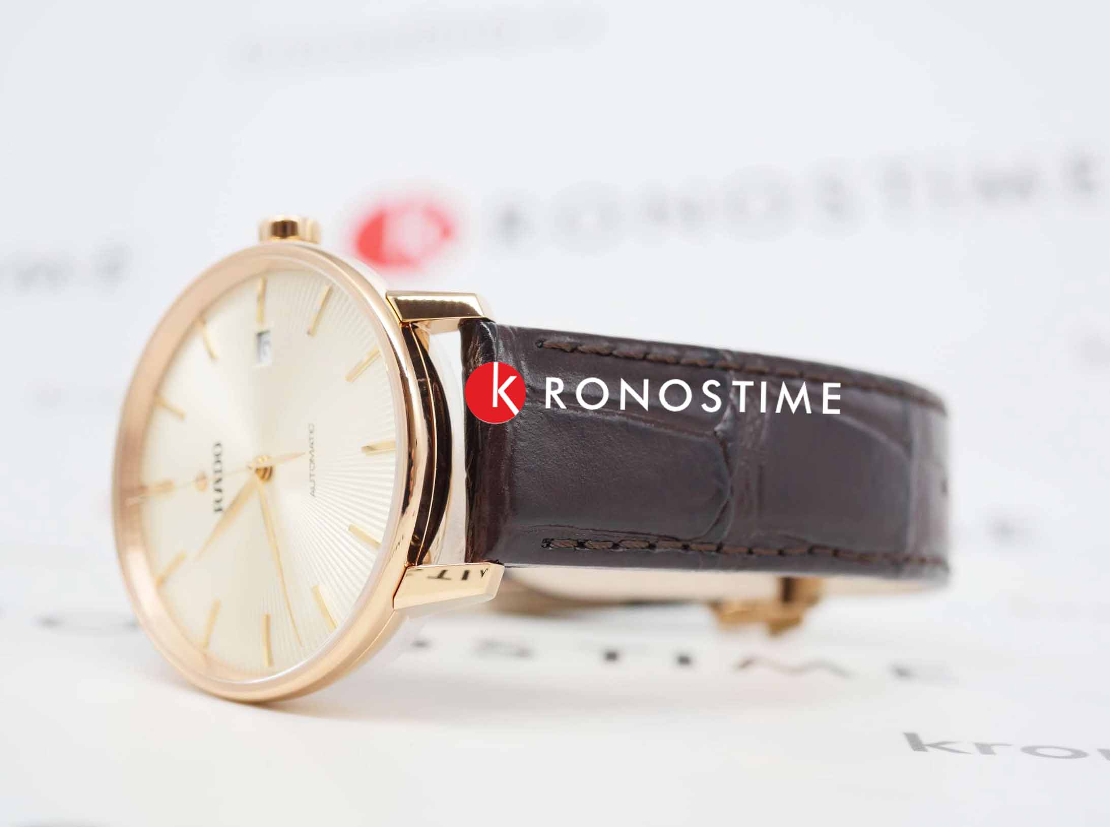 Премиальная модель очаровывает классическим исполнением, не лишённым роскошного стиля. Каждый по достоинству оценит ремешок из натуральной кожи с имитацией рисунка кожи крокодила. Надёжный стальной корпус защищает автоматический механизм ETA C07.611 с увеличенным резервом хода до 80 часов. Прозрачная задняя крышка позволяет наблюдать за движением деталей. Стекло из сапфира с антибликовой поверхностью. PVD-покрытиеPVDУльтратонкое покрытие наносится в технике вакуумного напыления, сочетает в себе нитрид титана особой прочности со слоем золота или оксида хрома. Несёт в себе декоративную или защитную функцию. цвета розового золота. Водонепроницаемость 50 метров. . Индикация текущего числа. Диаметр корпуса: 37,7 мм.