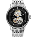 Лаконичный чёрный циферблат создает невероятный контраст с холодным блеском нержавеющей стали 316L, Часы скелетоны привлекают необычным браслетом, состоящим из звеньев разного размера. Модель оснащена автоматическим калибром ETA C07.631 с увеличенным запасом хода до 80 часов, за его работой можно понаблюдать сквозь прозрачную заднюю крышку и 3 окошка в циферблате. Сапфировое стекло с антибликовой обработкой устойчиво к возникновению царапин. Водостойкость 5 бар. . Диаметр корпуса: 41 мм.