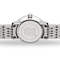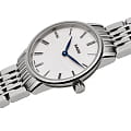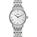 Минималистичная модель с синими стрелками отличается компактным перламутровым циферблатом, винтажный облик достигается благодаря римским цифрам. Аксессуар уместно смотрится с любым образом. Наручные часы показывают время с повышенной точностью благодаря швейцарскому кварцевому механизму ETA E63.111. Для изготовления корпуса и браслета была выбрана сталь 316L с устойчивостью к коррозии. Водонепроницаемость до 5 бар. Сапфировое стекло с антибликовой обработкой. . Диаметр корпуса: 27 мм.