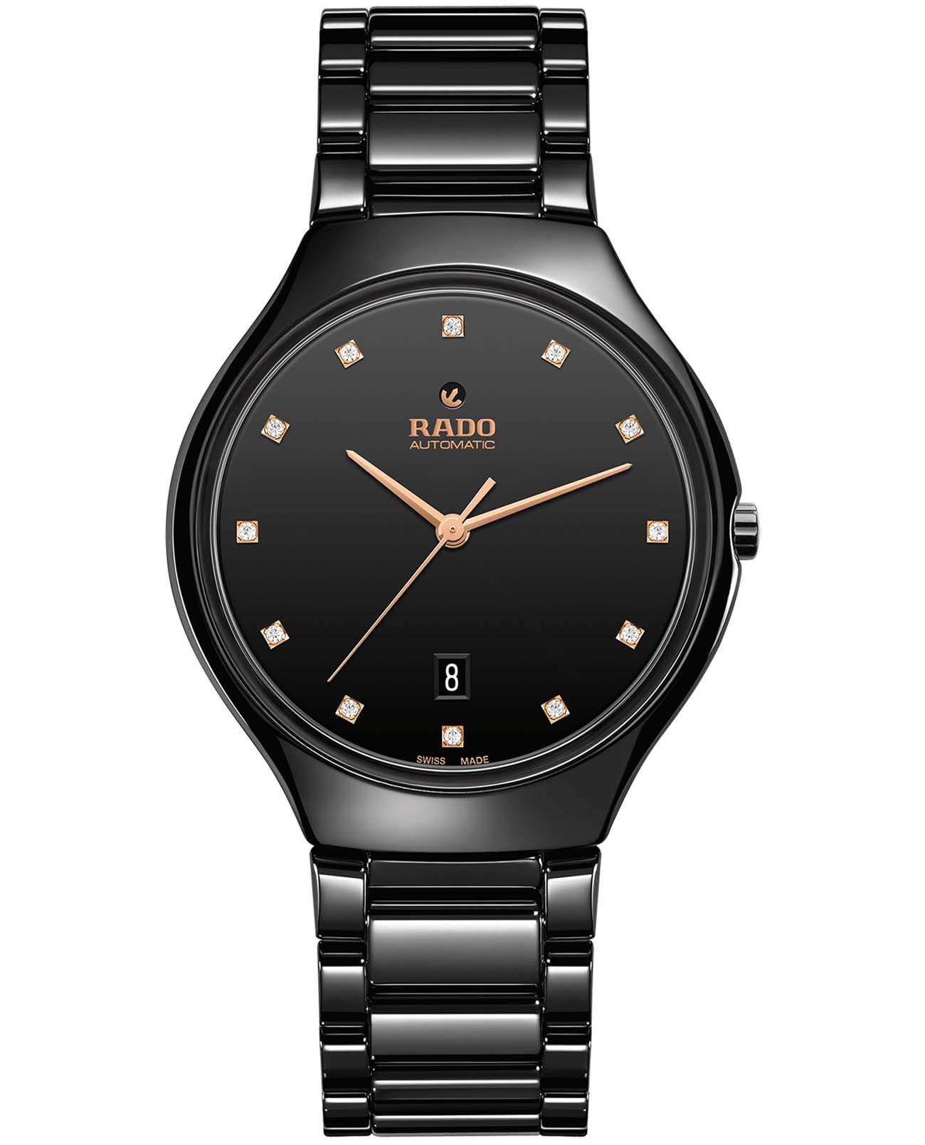 Швейцарские керамические механические часы Rado True Thinline Automatic Diamonds R27113722
