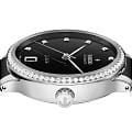 Женские механические часы с автоподзаводом Rado из коллекции Centrix — это гармоничное сочетание искусства, дизайна и швейцарского мастерства. Корпус диаметром 35 мм и толщиной 11,1 мм выполнен из нержавеющей стали 316L. БезельБезельВнешний ободок, закрепляющий стекло. В спортивных часах так называется поворотное кольцо с делениями на циферблате, выполняет роль таймера – замеряет отрезки времени на шкале. Неподвижный безель – элемент декора. Однонаправленно вращающийся безель на дайверских часах позволяет фиксировать моменты погружения и выныривания на поверхность. из нержавеющей стали инкрустирован 60 бриллиантами полной огранки Top Wesselton VS-SI. Циферблат чёрного цвета с лакированным покрытием украшен 11 бриллиантами и дополнен окошком даты в положении 6 часов. Циферблат защищён выпуклым сапфировым стекломСапфировое стеклоПрочный и надёжный материал из кристалла сапфира синтетического происхождения, характеризующийся особой твёрдостью и устойчивостью к царапинам и повреждениям. с антибликовым покрытиемАнтибликовое покрытиеСлой оксида металла в 0,13-0,3 микрон, благодаря которому стекло часов не бликует и не отражает свет. Антибликовое покрытие уменьшает отражение света в 10 раз, обеспечивая отличную читаемость показателей циферблата. с обеих сторон. Механизм — автоматический калибр R763 с антимагнитной пружиной Nivachron™Nivachron™Специально разработанный инновационный сплав Nivachron™ повышает устойчивость часов к воздействию магнитных полей., отрегулированный в пяти положениях, с запасом хода 80 часов. Прозрачная задняя крышка с сапфировым стеклом позволяет наблюдать за работой механизма. Часы оснащены браслетом из полированной нержавеющей стали и вставками из высокотехнологичной керамикиВысокотехнологичная керамикаИнновационный запатентованный Rado материал с гладкой или матовой поверхностью. Керамика за счёт кристаллической структуры обладает повышенной устойчивостью от возникновения царапин. Материал способен принимать температуру тела человека, обеспечивая невероятный комфорт при ношении. чёрного цвета, а также трёхсекционной застёжкой из нержавеющей стали. Водонепроницаемость 50 м позволяет использовать часы в повседневных условиях. Гарантия — 5 лет. Идеальный выбор для тех, кто ценит роскошь, точность и элегантность.