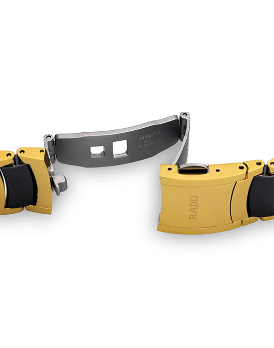 Чёрный циферблат в сочетании с блеском стали 316L с PVD-покрытиемPVDУльтратонкое покрытие наносится в технике вакуумного напыления, сочетает в себе нитрид титана особой прочности со слоем золота или оксида хрома. Несёт в себе декоративную или защитную функцию. и высокотехнологичной керамикиВысокотехнологичная керамикаИнновационный запатентованный Rado материал с гладкой или матовой поверхностью. Керамика за счёт кристаллической структуры обладает повышенной устойчивостью от возникновения царапин. Материал способен принимать температуру тела человека, обеспечивая невероятный комфорт при ношении. станет идеальным дополнением к образу. За движением деталей механизма можно следить благодаря прозрачной задней крышке. Сапфировое стекло. Водонепроницаемость 30 метров. . Отображение числа. Диаметр корпуса: 38 мм.