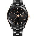 Премиальный аксессуар станет роскошным завершением делового образа, это идеальное решение для создания респектабельного имиджа. Чёрный лаконичный циферблат имеет золотистые стрелки и метки, ярко выделяющиеся на тёмном фоне. Надёжный корпус выполнен из сочетания нержавеющей стали 316L и высокотехнологичной керамикиВысокотехнологичная керамикаИнновационный запатентованный Rado материал с гладкой или матовой поверхностью. Керамика за счёт кристаллической структуры обладает повышенной устойчивостью от возникновения царапин. Материал способен принимать температуру тела человека, обеспечивая невероятный комфорт при ношении.. Часы работают за счёт автоматического калибра ETA 2681 с запасом хода 38 часов. Водостойкость 50 метров. PVD-покрытиеPVDУльтратонкое покрытие наносится в технике вакуумного напыления, сочетает в себе нитрид титана особой прочности со слоем золота или оксида хрома. Несёт в себе декоративную или защитную функцию. золотистого цвета. Выпуклое сапфировое стекло с антибликовой поверхностью. Диаметр корпуса: 36 мм.