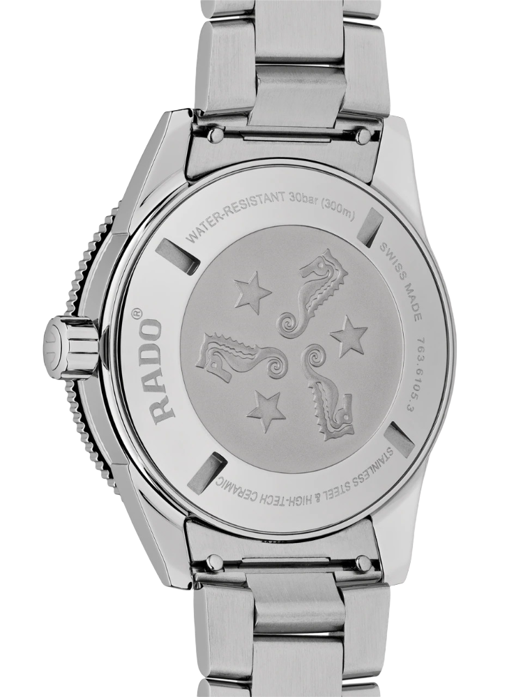 Премиальная модель обладает винтажным характером, синий циферблат обращает наше внимание на оригинальные стрелки в виде меча и стрелы. Часы обладают высокими показателями водонепроницаемости - сохранение герметичности до 20 бар, что стало возможным благодаря задней крышке и заводной головке с винтовыми фиксаторами. Автоподзавод. Швейцарский калибр ETA C07.611 с 80-часовым резервом хода. Антибликовая обработка сапфирового стеклаСапфировое стеклоПрочный и надёжный материал из кристалла сапфира синтетического происхождения, характеризующийся особой твёрдостью и устойчивостью к царапинам и повреждениям.. Корпус из хирургической стали 316L, безельБезельВнешний ободок, закрепляющий стекло. В спортивных часах так называется поворотное кольцо с делениями на циферблате, выполняет роль таймера – замеряет отрезки времени на шкале. Неподвижный безель – элемент декора. Однонаправленно вращающийся безель на дайверских часах позволяет фиксировать моменты погружения и выныривания на поверхность. из высокотехнологичной керамикиВысокотехнологичная керамикаИнновационный запатентованный Rado материал с гладкой или матовой поверхностью. Керамика за счёт кристаллической структуры обладает повышенной устойчивостью от возникновения царапин. Материал способен принимать температуру тела человека, обеспечивая невероятный комфорт при ношении.. Прочный стальной браслет. Отображение числа. Диаметр корпуса: 42 мм.