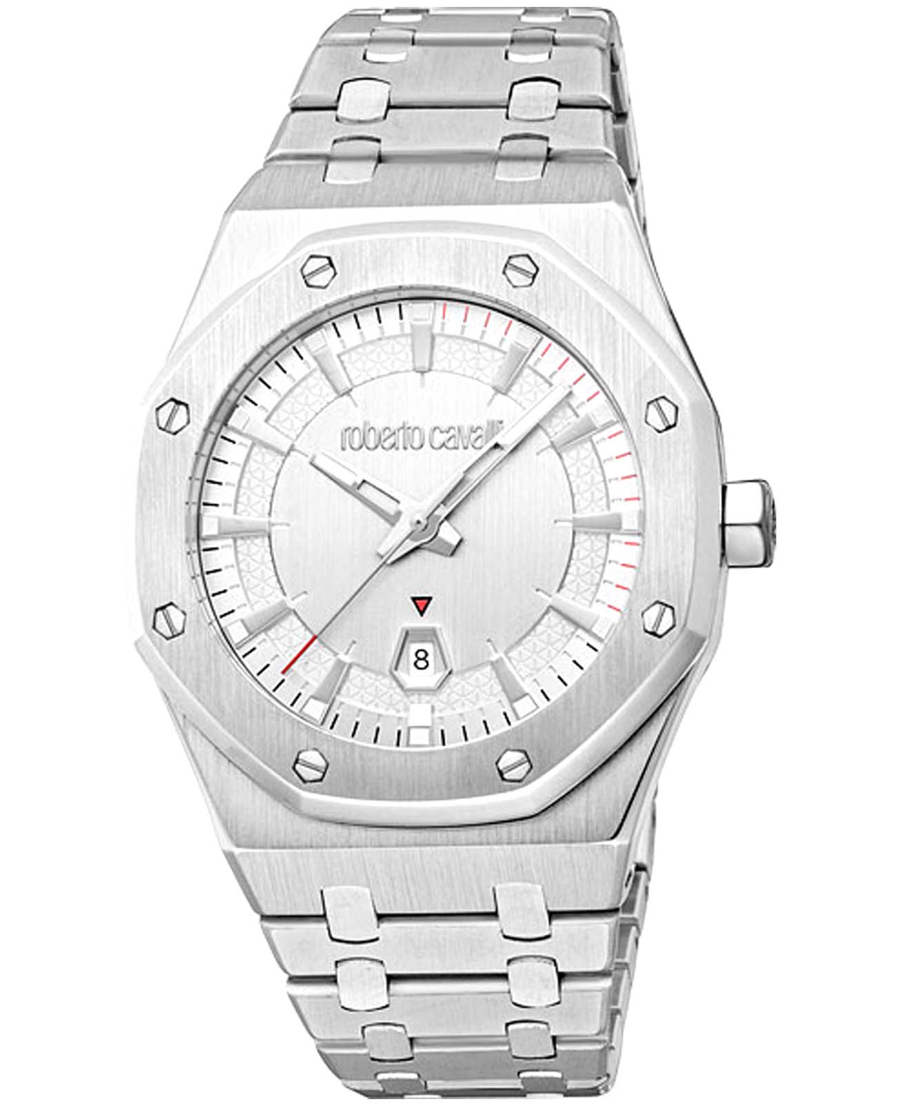 ROBERTO CAVALLI Uomo Ottagono RC5G102M0055 — стильные итальянские часы сочетающие в себе элегантность и современный функционал. Корпус диаметром 42 мм выполнен из нержавеющей стали, толщина корпуса составляет 12 мм, что придает модели выразительный внешний вид и надежную защиту от внешних воздействий. Циферблат, искусно оформленный фирменными элементами Roberto Cavalli, притягивает взгляд и подчеркивает ваш безупречный вкус.