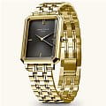 Женские кварцевые часы. Центральные часовая, минутная и секундная стрелки. Черный циферблат. Восьмиугольный корпус выполнен из металла с IP покрытием цвета желтого золота. Размер корпуса составляет 19,5 х 24 мм, толщина 7 мм. Стальной браслет с покрытием, браслетная застежка. Прочное минеральное стекло устойчивое к мелким механическим повреждениям. Водостойкость WR 30 (брызги).