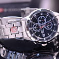 Часы-хронограф с секундомером до 60мин, точность 1/10с. Браслет с раскладывающейся застежкой.