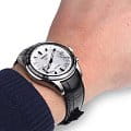 -сигнала для установки и корректировки точного времени, даты и часового пояса. Титановый корпус с фирменной зеркальной полировкой Зарацу. БезельБезельВнешний ободок, закрепляющий стекло. В спортивных часах так называется поворотное кольцо с делениями на циферблате, выполняет роль таймера – замеряет отрезки времени на шкале. Неподвижный безель – элемент декора. Однонаправленно вращающийся безель на дайверских часах позволяет фиксировать моменты погружения и выныривания на поверхность. из керамики. Сапфировое стекло. Закручивающаяся задняя крышка. Водонепроницаемость 100 метров. Люминесцентное покрытие LumiBriteЛюминесцентное покрытиеПозволяет считывать показания времени в темноте. Производители наносят на стрелки, часовые индексы, безель или поверхность циферблата светонакопительный состав, дающий холодное свечение.. Застёжка с фиксатором препятствует случайному расстёгиванию ремешка из кожи крокодила. Вечный календарьВечный календарьКлассическое часовое усложнение, представляющее собой календарь, рассчитанный на несколько лет вперёд (стандартно – до 2099 года). Определяет текущую дату, день недели, месяц., функция мирового времениМировое время Полезное часовое усложнение, отображающее время в основных городах и известных областях по всему миру, оно связано с часовыми поясами, удобно для путешественников и бизнесменов. – 40 часовых поясов. Диаметр корпуса: 44,8 мм.
