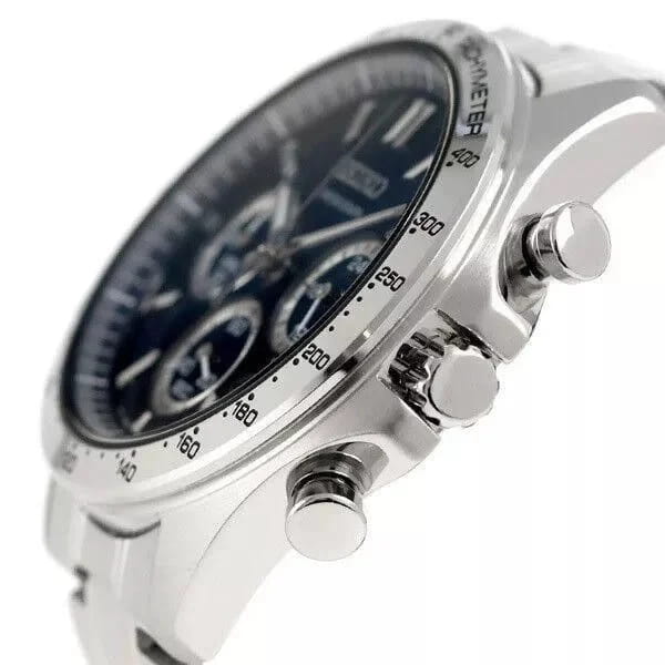 Мужские кварцевые часы Seiko SBTR011 из коллекции Spirit — это сочетание точности, функциональности и современного дизайна. Часы оснащены японским механизмом калибра 8T63 с функцией хронографаХронографФункция позволяет измерять отрезки времени с особой точностью: часы, минуты, секунды. Верным признаком хронографа является наличие на циферблате 3 дополнительных окошек-счётчиков., включающей секундомер с точностью 1/5 секунды и временем измерения до 1 часа, отображаемый центральной стрелкой. Также реализована функция тахиметраТахиметрРазмеченная шкала, располагается на ободке или безеле часов. Тахиметр позволяет рассчитать скорость на определённом участке пути, расстояние измеряется в километрах или милях.. Центральные часовая и минутная стрелки дополнены вынесенной секундной стрелкой на отдельном циферблате, окошко даты расположено между отметками 4 и 5 часов. Циферблат синего цвета оформлен штриховыми метками, стрелки и метки покрыты люминесцентным покрытиемЛюминесцентное покрытиеПозволяет считывать показания времени в темноте. Производители наносят на стрелки, часовые индексы, безель или поверхность циферблата светонакопительный состав, дающий холодное свечение. LumiBrite, обеспечивающим хорошую читаемость в темноте. Корпус выполнен из нержавеющей стали и защищён прочным минеральным стеклом Hardlex, устойчивым к царапинам. Браслет из нержавеющей стали фиксируется на раскладной застёжкеРаскладная застёжкаТакой тип застёжки используется только на браслетах из металла. Она никогда не раскрывается полностью, происходит разделение на 2 и более частей. Раскладывающая застёжка снизит вероятность потери часов к минимуму.. Водонепроницаемость 100 м позволяет использовать часы для плавания, ныряния и других водных видов спорта. Модель подходит как для повседневного, так и для делового образа.