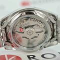 Наручные часы выполнены в классическом стиле, спортивные элементы делают акцент на надёжности и функциональности модели. Традиционный характер выражается в оснащении аксессуара японским механизмом Seiko 7S26 с возможностью ручного и автоматического завода. Калибр отличается сохранением запаса хода на 40 часов, его работу можно отследить через прозрачную завинчивающуюся заднюю крышку. В качестве основного материала была выбрана хирургическая сталь 316L, характеризующаяся устойчивостью к царапинам, повреждениям. Защиту циферблата обеспечивает прочное минеральное стеклоМинеральное стеклоМинеральное стекло представляет собой искусственно выращенный минерал кварца. Такое стекло отличается особой устойчивостью к повреждениям и царапинам. Уступает по некоторым качествам сапфировому стеклу. Hardlex. На стрелки нанесено люминесцентное покрытиеЛюминесцентное покрытиеПозволяет считывать показания времени в темноте. Производители наносят на стрелки, часовые индексы, безель или поверхность циферблата светонакопительный состав, дающий холодное свечение.. Водостойкость при давлении до 5 бар позволяет принимать душ в часах, они выдержат дождь или мойку машины. На позиции 3 часов размещено окошко даты и дня недели. Диаметр корпуса: 37 мм.