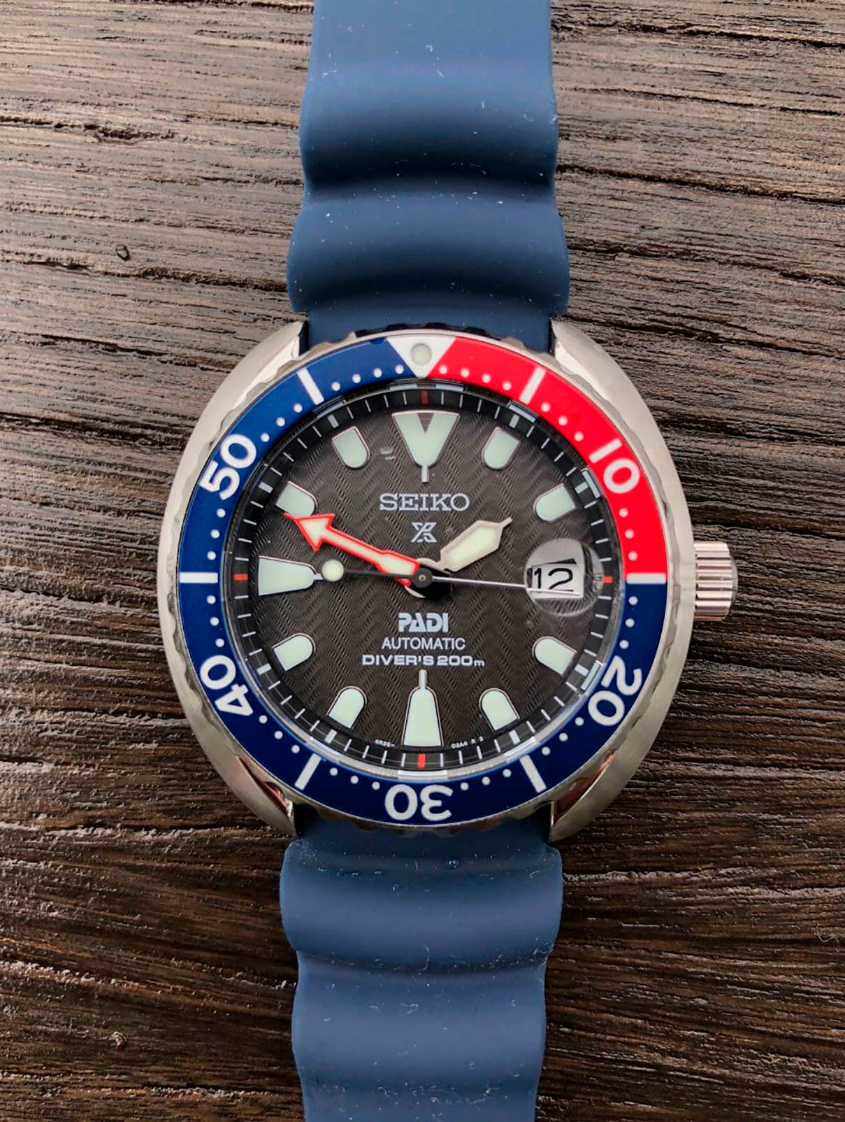 Японские мужские механические часы Seiko SRPB99K1 из коллекции Prospex – стильный вариант в красно-синей расцветке «Pepsi», символизирующей сотрудничество бренда с профессиональной ассоциацией инструкторов по дайвингу Radi.