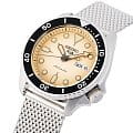 Часы Seiko 5 Sports SRPD67K1 сочетают в себе элегантный дизайн и надёжность, характерные для японского часового мастерства. Корпус диаметром 42,5 мм выполнен из нержавеющей стали, а кремовый циферблат защищён минеральным стекломМинеральное стеклоМинеральное стекло представляет собой искусственно выращенный минерал кварца. Такое стекло отличается особой устойчивостью к повреждениям и царапинам. Уступает по некоторым качествам сапфировому стеклу. с повышенной прочностью.