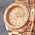 Водозащита 100 метров (10 бар) позволяет использовать часы для плавания и других водных видов спорта. Стальной браслет с PVD-покрытиемPVDУльтратонкое покрытие наносится в технике вакуумного напыления, сочетает в себе нитрид титана особой прочности со слоем золота или оксида хрома. Несёт в себе декоративную или защитную функцию. розового цвета и раскладной застёжкойРаскладная застёжкаТакой тип застёжки используется только на браслетах из металла. Она никогда не раскрывается полностью, происходит разделение на 2 и более частей. Раскладывающая застёжка снизит вероятность потери часов к минимуму. обеспечивает комфортное ношение и надёжную фиксацию на запястье.