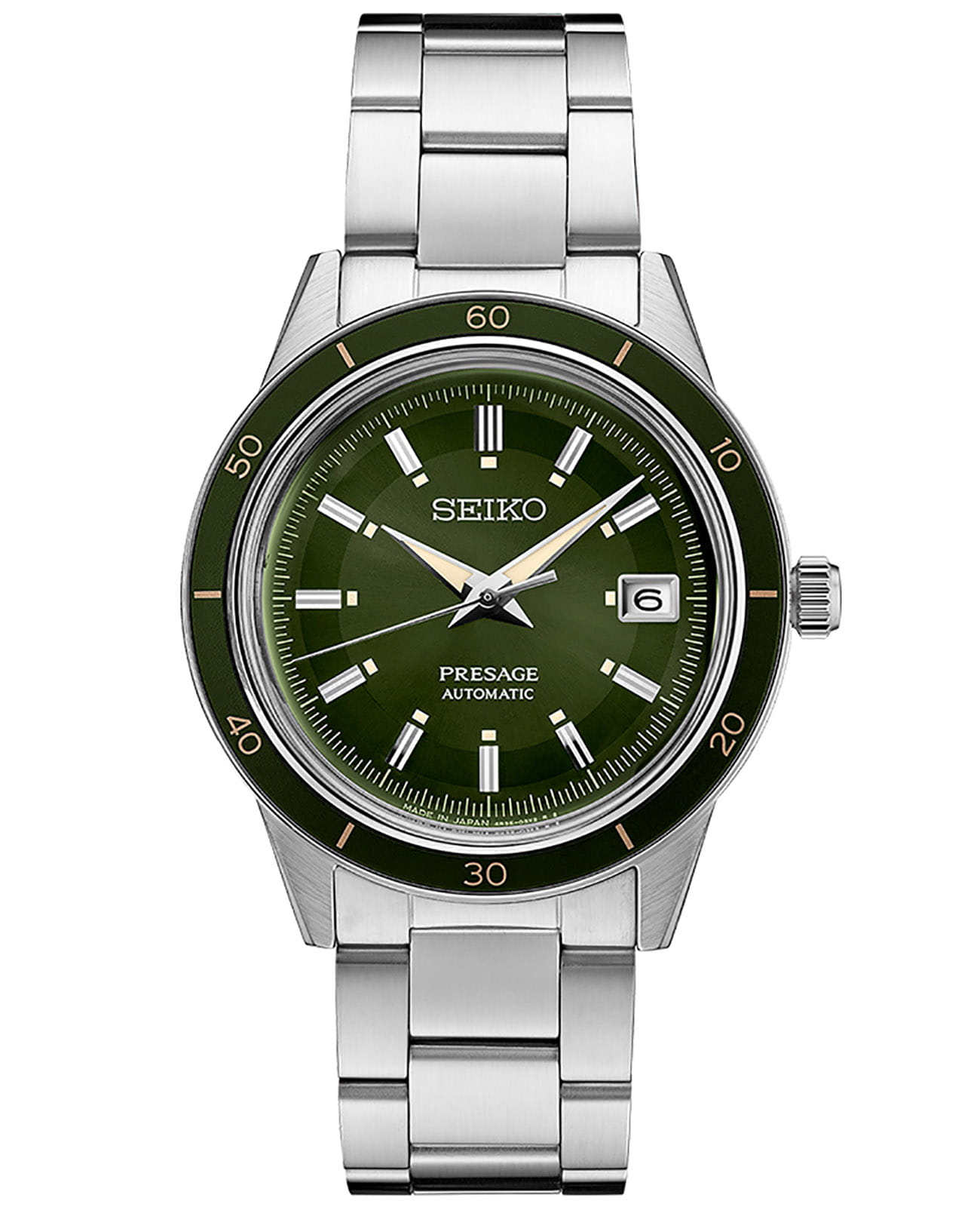 Модель SRPG07J1 из коллекции Seiko Presage Style 60's сочетает винтажный дизайн с современными технологиями. Корпус и браслет выполнены из нержавеющей стали. Надёжный автоматический механизм Seiko 4R35 обеспечивает до 41 часа запаса хода. Циферблат защищён минеральным стекломМинеральное стеклоМинеральное стекло представляет собой искусственно выращенный минерал кварца. Такое стекло отличается особой устойчивостью к повреждениям и царапинам. Уступает по некоторым качествам сапфировому стеклу.. Безель с PVD-покрытиемPVDУльтратонкое покрытие наносится в технике вакуумного напыления, сочетает в себе нитрид титана особой прочности со слоем золота или оксида хрома. Несёт в себе декоративную или защитную функцию. из нержавеющей стали придаёт модели элегантный вид. Установлена раскладная застёжкаРаскладная застёжкаТакой тип застёжки используется только на браслетах из металла. Она никогда не раскрывается полностью, происходит разделение на 2 и более частей. Раскладывающая застёжка снизит вероятность потери часов к минимуму. для надёжной фиксации на запястье.