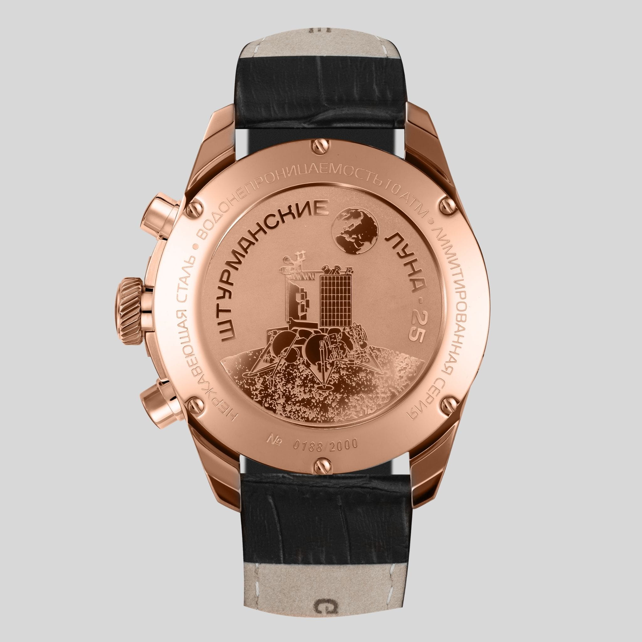 Мужские российские кварцевые часы Штурманские 6S20/4789408, Часы Штурманские из коллекции Луна 25 – это уникальный аксессуар, созданный для настоящих ценителей качественных и стильных часов. Модель воплощает в себе сочетание элегантного дизайна и надежной функциональности. Корпус часов изготовлен из нержавеющей стали PVD-покрытиемPVDУльтратонкое покрытие наносится в технике вакуумного напыления, сочетает в себе нитрид титана особой прочности со слоем золота или оксида хрома. Несёт в себе декоративную или защитную функцию.. БезельБезельВнешний ободок, закрепляющий стекло. В спортивных часах так называется поворотное кольцо с делениями на циферблате, выполняет роль таймера – замеряет отрезки времени на шкале. Неподвижный безель – элемент декора. Однонаправленно вращающийся безель на дайверских часах позволяет фиксировать моменты погружения и выныривания на поверхность. с PVD-покрытиемPVDУльтратонкое покрытие наносится в технике вакуумного напыления, сочетает в себе нитрид титана особой прочности со слоем золота или оксида хрома. Несёт в себе декоративную или защитную функцию.. Минеральное стеклоМинеральное стеклоМинеральное стекло представляет собой искусственно выращенный минерал кварца. Такое стекло отличается особой устойчивостью к повреждениям и царапинам. Уступает по некоторым качествам сапфировому стеклу. защищает циферблат от царапин и повреждений, сохраняя его безупречный внешний вид на протяжении долгого времени. Стрелки часов, выполненные в классическом стиле, имеют люминесцентное покрытие, что обеспечивает удобное считывание времени в условиях низкой освещенности. Класс водозащиты 50 метров, позволит защитить корпус от случайных брызг или капель дождя. Задняя крышка украшена изображением посадочного аппарата Луна-25 на поверхности Луны и крепится на 4-х винтах. Окошко даты находится в положении 6 часов.