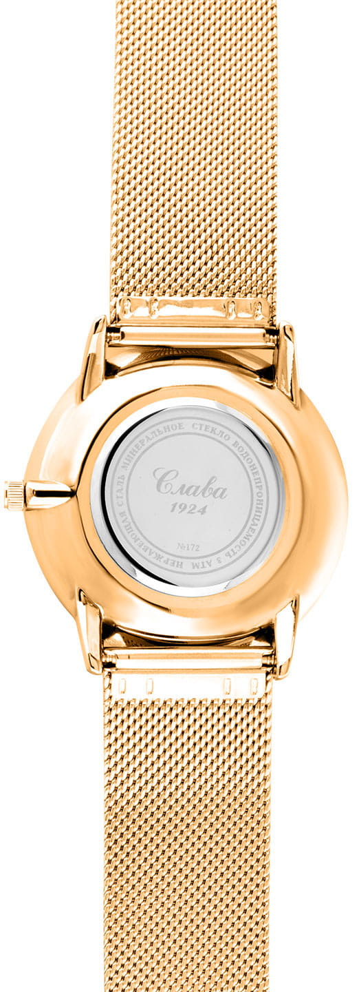 Российские часы Слава Традиция 1729983/2035-100 оснащены механизмом Miyota, что обеспечивает исключительную надежность и точность хода. Корпус часов выполнен из алюминиевого сплава с IP-покрытиемIP-покрытиеМетод ионного напыления. Демонстрирует повышенную устойчивость к истиранию, окислению и химическим веществам. Под воздействием высокого давления и температуры около 1500°C молекулы металла надёжно соединяются с частицами корпуса часов., что придает им долговечность и устойчивость к внешним воздействиям. Минеральное стеклоМинеральное стеклоМинеральное стекло представляет собой искусственно выращенный минерал кварца. Такое стекло отличается особой устойчивостью к повреждениям и царапинам. Уступает по некоторым качествам сапфировому стеклу. устойчиво к мелким механическим повреждениям, что гарантирует долговечность и сохранение первоначального вида.