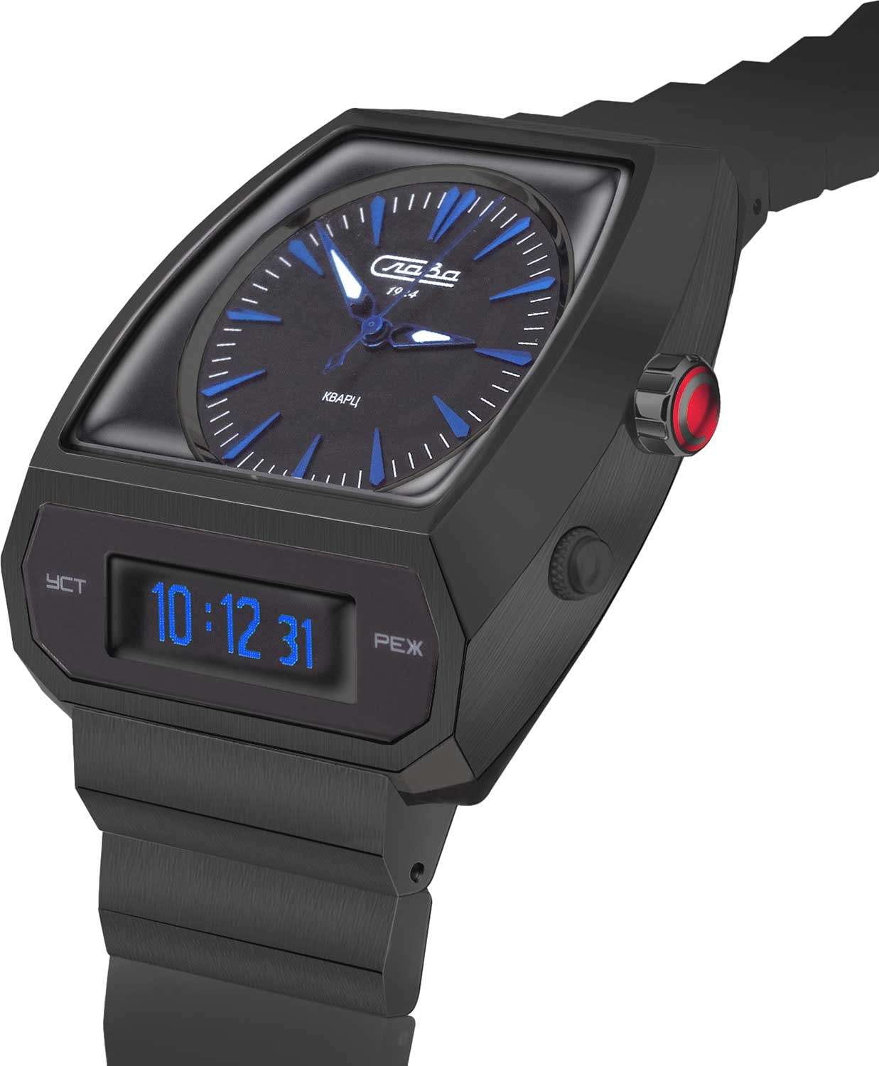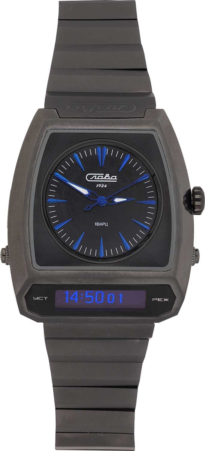 Часы Слава 9006738/100-GL32 представляют собой уникальное сочетание ретро-стиля и современных технологий, которые обязательно привлекут внимание коллекционеров и ценителей эксклюзивных аксессуаров. Выпущенные в России, эти лимитированные часы вдохновлены дизайном моделей для водителей, популярных в 1970-х годах. В основе их создания лежит концепция, позволяющая легко считывать время, не отрывая рук от руля, что делает их особенно удобными для автолюбителей. Корпус и браслет изготовлены из легкого и прочного титана с IP-покрытиемIP-покрытиеМетод ионного напыления. Демонстрирует повышенную устойчивость к истиранию, окислению и химическим веществам. Под воздействием высокого давления и температуры около 1500°C молекулы металла надёжно соединяются с частицами корпуса часов. черного цвета, придающего часам элегантный и современный вид. Часы оснащены двумя механизмами, включая кварцевый механизм калибра Miyota GL32 и специально разработанный электронный механизм, который позволяет одновременно отображать время в двух часовых поясах. Черный циферблат с штриховыми метками надежно защищен сапфировым стекломСапфировое стеклоПрочный и надёжный материал из кристалла сапфира синтетического происхождения, характеризующийся особой твёрдостью и устойчивостью к царапинам и повреждениям., устойчивым к царапинам. Стрелки с люминесцентным покрытиемЛюминесцентное покрытиеПозволяет считывать показания времени в темноте. Производители наносят на стрелки, часовые индексы, безель или поверхность циферблата светонакопительный состав, дающий холодное свечение., что облегчает чтение времени даже в условиях слабого освещения. Дополнительные функции включают будильник, секундомер, таймер обратного отсчета и автоматический календарь, который отображает число, день недели, месяц и год. Рифленая заводная головка и задняя крышка, крепящаяся на винтах, подчеркивают внимание к деталям. Индивидуальный номер, выгравированный на боковой стенке, подтверждает эксклюзивность каждой модели. Черный титановый браслет с IP-покрытиемIP-покрытиеМетод ионного напыления. Демонстрирует повышенную устойчивость к истиранию, окислению и химическим веществам. Под воздействием высокого давления и температуры около 1500°C молекулы металла надёжно соединяются с частицами корпуса часов. и застежкой «бабочка»Застёжка "бабочка"Такой вид застёжки дополняется предохранителями, помогающими избежать случайного раскрытия браслета. Обладают изящным исполнением. обеспечивает надежную фиксацию на запястье. Лимитированная серия ограничена 500 экземплярами, что подчеркивает их уникальность. Часы поставляются в подарочной упаковке, что делает их идеальным выбором для подарка или личной коллекции.Часы обладают водозащитой уровня WR 50, что позволяет им выдерживать воздействие воды в повседневных ситуациях.