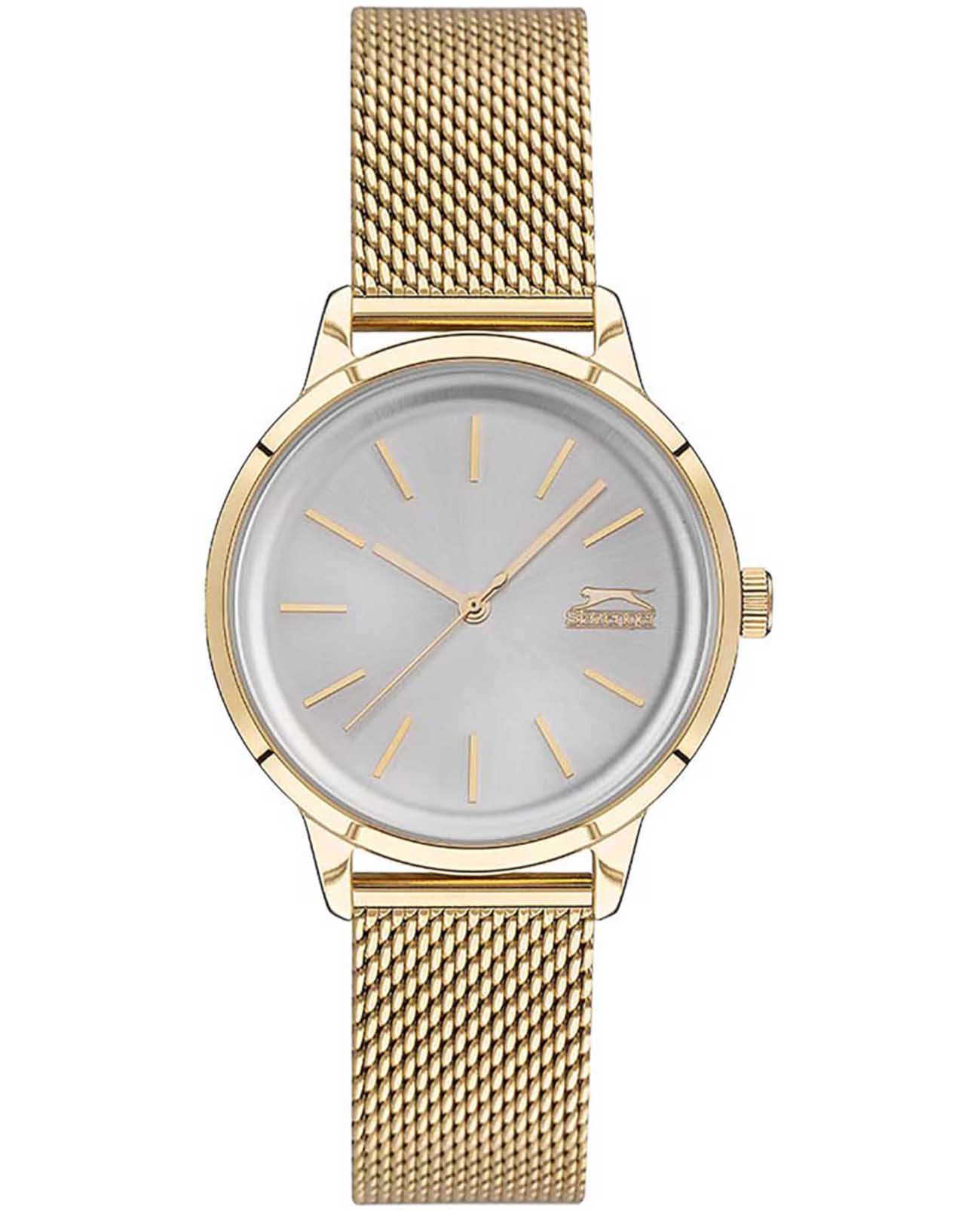 Slazenger SL.09.2028.3.02 – элегантные женские часы, сочетающие стильный дизайн и функциональность. Корпус диаметром 36 мм и толщиной 9 мм выполнен из суперметалла с PVD-покрытиемPVDУльтратонкое покрытие наносится в технике вакуумного напыления, сочетает в себе нитрид титана особой прочности со слоем золота или оксида хрома. Несёт в себе декоративную или защитную функцию., обеспечивающего прочность и долговечность. Циферблат защищён минеральным стекломМинеральное стеклоМинеральное стекло представляет собой искусственно выращенный минерал кварца. Такое стекло отличается особой устойчивостью к повреждениям и царапинам. Уступает по некоторым качествам сапфировому стеклу., устойчивым к царапинам. Часы оснащены точным кварцевым механизмом, обеспечивающим надёжное отображение времени. Браслет из суперметалла миланского плетения с PVD-покрытиемPVDУльтратонкое покрытие наносится в технике вакуумного напыления, сочетает в себе нитрид титана особой прочности со слоем золота или оксида хрома. Несёт в себе декоративную или защитную функцию. на раскладном замкеРаскладной замокДанный вариант застежки используется только на часах с металлическим браслетом. Отличительная особенность такого крепления в том, что длина браслета становится универсальной и вы можете самостоятельно отрегулировать нужный вам размер – застежка просто двигается по браслету часов., обеспечивающей комфортное ношение и надёжную фиксацию на запястье. Водозащита до 30 метров (3 ATM) защищает часы от случайных брызг и дождя, делая их подходящими для повседневного использования.