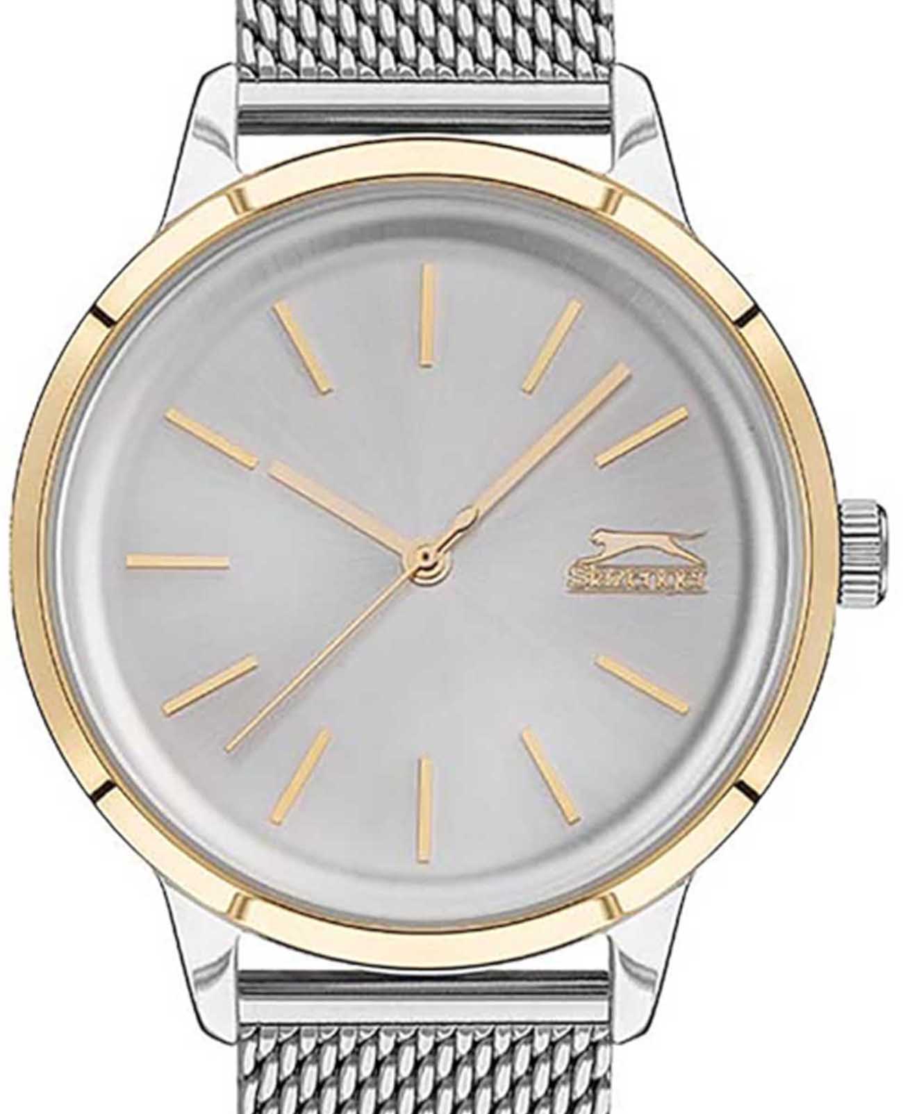 Slazenger SL.09.2028.3.05 – элегантные женские часы, сочетающие стильный дизайн и функциональность. Корпус диаметром 36 мм и толщиной 9 мм выполнен из суперметалла, обеспечивающего прочность и долговечность. Циферблат защищён минеральным стекломМинеральное стеклоМинеральное стекло представляет собой искусственно выращенный минерал кварца. Такое стекло отличается особой устойчивостью к повреждениям и царапинам. Уступает по некоторым качествам сапфировому стеклу., устойчивым к царапинам. БезельБезельВнешний ободок, закрепляющий стекло. В спортивных часах так называется поворотное кольцо с делениями на циферблате, выполняет роль таймера – замеряет отрезки времени на шкале. Неподвижный безель – элемент декора. Однонаправленно вращающийся безель на дайверских часах позволяет фиксировать моменты погружения и выныривания на поверхность. с IP-покрытиемIP-покрытиеМетод ионного напыления. Демонстрирует повышенную устойчивость к истиранию, окислению и химическим веществам. Под воздействием высокого давления и температуры около 1500°C молекулы металла надёжно соединяются с частицами корпуса часов.. Часы оснащены точным кварцевым механизмом, обеспечивающим надёжное отображение времени. Браслет из суперметалла миланского плетения на раскладном замкеРаскладной замокДанный вариант застежки используется только на часах с металлическим браслетом. Отличительная особенность такого крепления в том, что длина браслета становится универсальной и вы можете самостоятельно отрегулировать нужный вам размер – застежка просто двигается по браслету часов., обеспечивающей комфортное ношение и надёжную фиксацию на запястье. Водозащита до 30 метров (3 ATM) защищает часы от случайных брызг и дождя, делая их подходящими для повседневного использования.