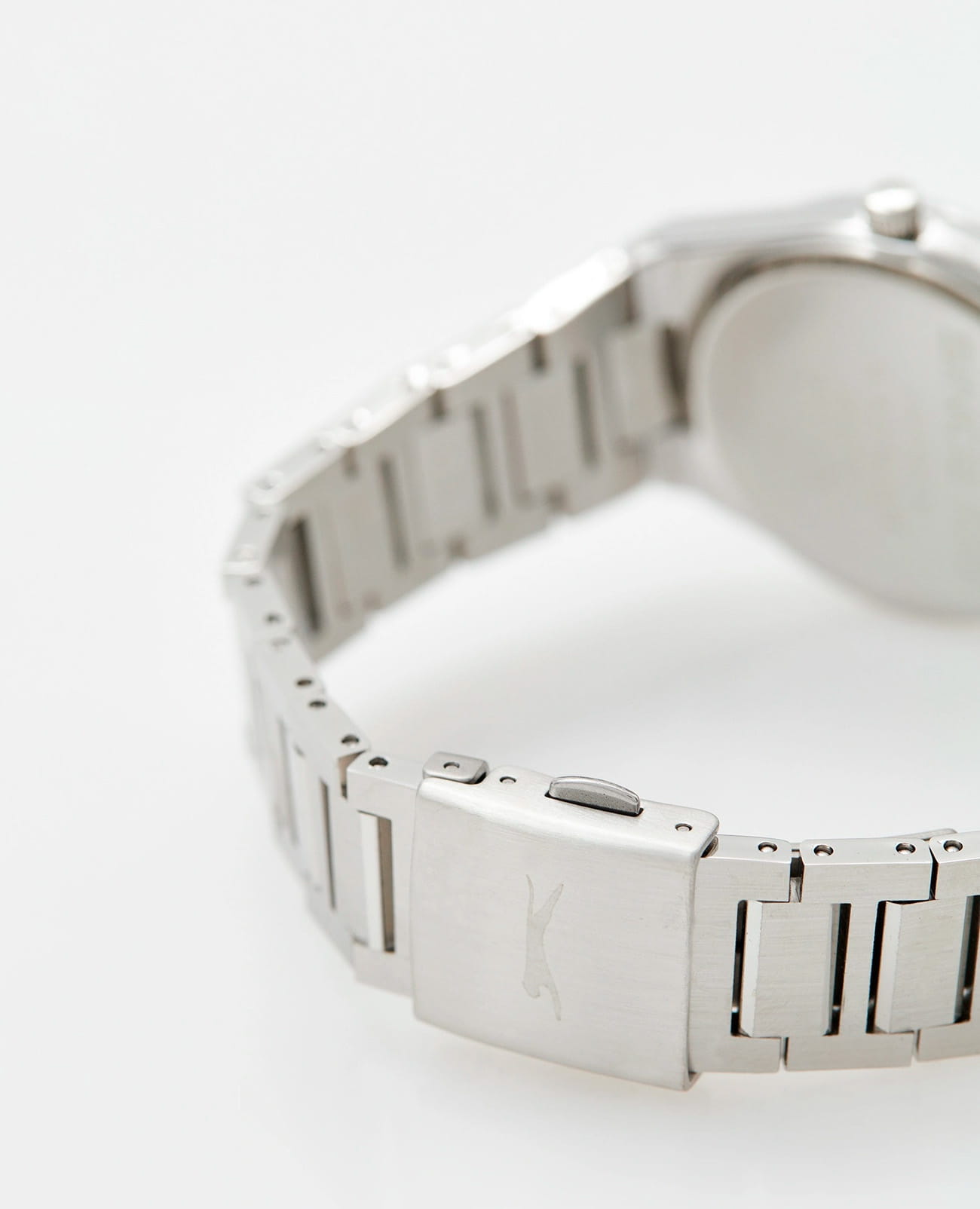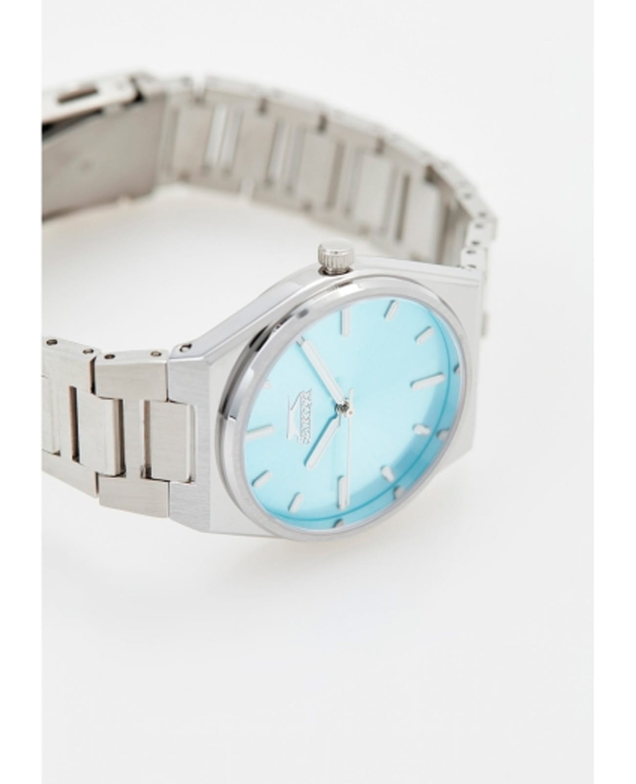 Женские наручные часы Slazenger SL.09.2116.3.04 сочетают в себе элегантный дизайн и практичность современных технологий. Модель обладает круглым корпусом диаметром 34 мм, изготовленным из суперметалла, что обеспечивает высокую устойчивость к внешним воздействиям. Браслет выполнен из металла с раскладной застежкойРаскладной замокДанный вариант застежки используется только на часах с металлическим браслетом. Отличительная особенность такого крепления в том, что длина браслета становится универсальной и вы можете самостоятельно отрегулировать нужный вам размер – застежка просто двигается по браслету часов., гарантирующей комфортное ношение и безопасность. Циферблат светло-голубого цвета декорирован стрелками, обеспечивающими четкую читаемость времени. Для защиты используется минеральное стеклоМинеральное стеклоМинеральное стекло представляет собой искусственно выращенный минерал кварца. Такое стекло отличается особой устойчивостью к повреждениям и царапинам. Уступает по некоторым качествам сапфировому стеклу., обеспечивающее прочную защиту от царапин. Часы работают на кварцевом механизме, что гарантирует точное время без необходимости подзаводки. Водонепроницаемость часов достигает 3 атмосфер (30M), что позволяет использовать их в бытовых условиях, однако не рекомендуется для плавания или водных видов спорта. Модель также оснащена функцией отображения даты, делая ее практичной для повседневного использования . Толщина модели составляет 9 мм.