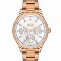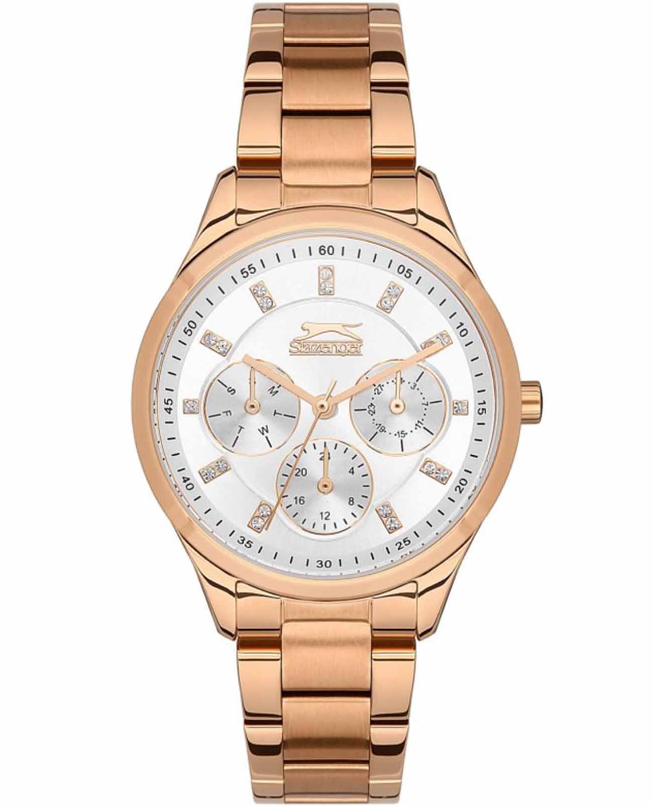 Часы Slazenger SL.09.2151.4.02 — это элегантный аксессуар, который прекрасно дополнит женственный образ. Эти наручные кварцевые часы сочетают в себе стиль и функциональность. Круглый корпус диаметром 35 мм изготовлен из суперметалла с золотистым IP-покрытиемIP-покрытиеМетод ионного напыления. Демонстрирует повышенную устойчивость к истиранию, окислению и химическим веществам. Под воздействием высокого давления и температуры около 1500°C молекулы металла надёжно соединяются с частицами корпуса часов., который отличается повышенной прочностью. Белый циферблат выполнен по технологии Sunray, что создает эффект солнечных лучей, и украшен фианитами, придающими часам особую изысканность. На циферблате расположены метки в виде штрихов и точек, а также логотип бренда. Время отображается в 12- и 24-часовом формате, а также предусмотрены отдельные индикаторы для дня недели и числа. Минеральное стеклоМинеральное стеклоМинеральное стекло представляет собой искусственно выращенный минерал кварца. Такое стекло отличается особой устойчивостью к повреждениям и царапинам. Уступает по некоторым качествам сапфировому стеклу. обеспечивает надежную защиту от царапин. Водозащита уровня 30WR позволяет защищать часы от случайных попаданий воды. Металлический браслет с золотистым IP-покрытиемIP-покрытиеМетод ионного напыления. Демонстрирует повышенную устойчивость к истиранию, окислению и химическим веществам. Под воздействием высокого давления и температуры около 1500°C молекулы металла надёжно соединяются с частицами корпуса часов. и раскладной застёжкойРаскладная застёжкаТакой тип застёжки используется только на браслетах из металла. Она никогда не раскрывается полностью, происходит разделение на 2 и более частей. Раскладывающая застёжка снизит вероятность потери часов к минимуму. гарантирует комфортное ношение и надежную фиксацию на запястье. Рифленая заводная головка добавляет удобства в управлении настройками. Эти часы станут идеальным выбором для тех, кто ценит сочетание классического дизайна и практичности.