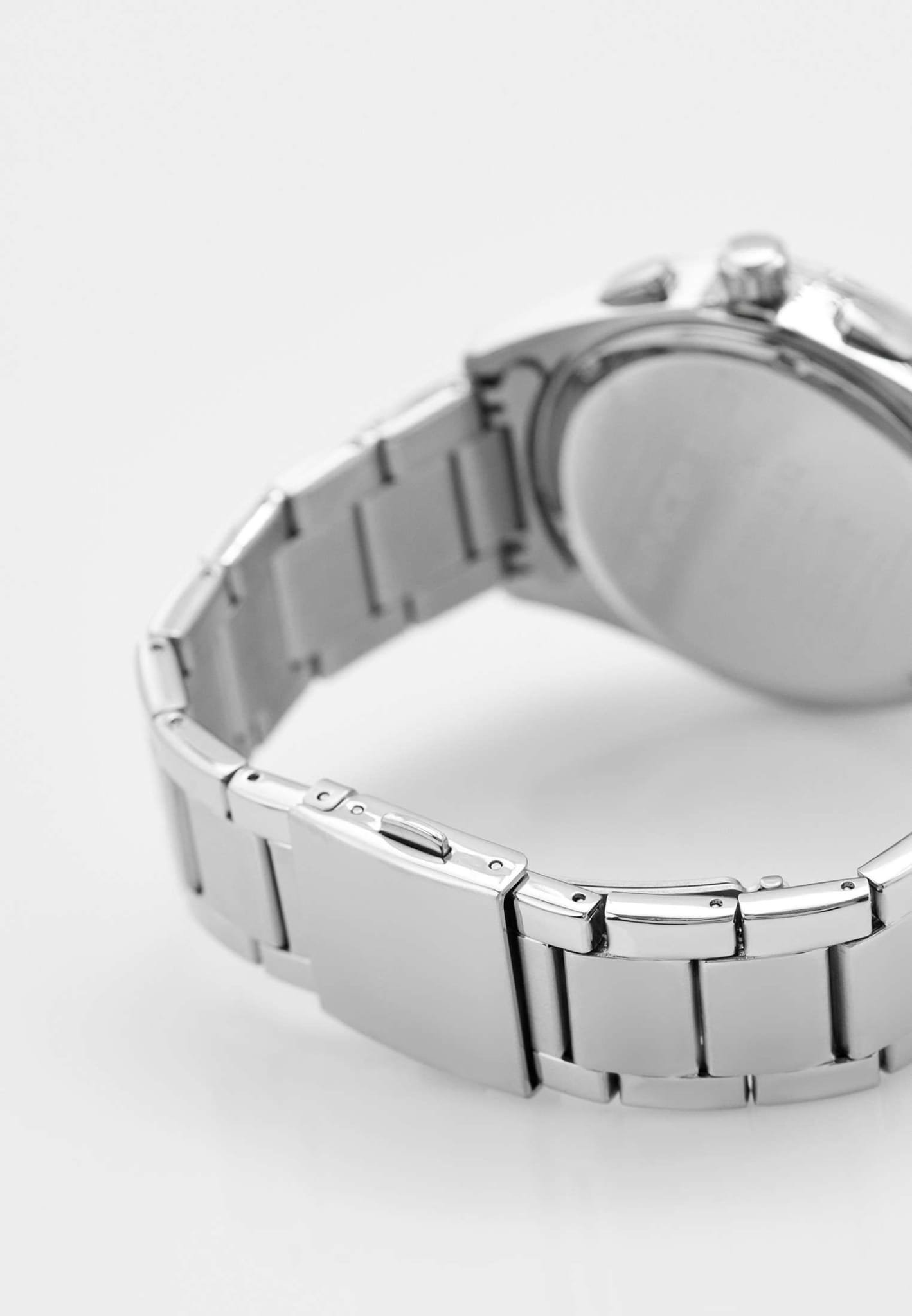 Часы Slazenger SL.09.2215.2.02 представляют собой стильные мужские наручные часы, которые сочетают в себе элегантный дизайн и функциональность. Изготовленные в Англии, эти кварцевые часы оснащены прочным металлическим корпусом и металлическим браслетом с раскладной застёжкойРаскладная застёжкаТакой тип застёжки используется только на браслетах из металла. Она никогда не раскрывается полностью, происходит разделение на 2 и более частей. Раскладывающая застёжка снизит вероятность потери часов к минимуму., который обеспечивает надежную фиксацию на запястье. Минеральное стеклоМинеральное стеклоМинеральное стекло представляет собой искусственно выращенный минерал кварца. Такое стекло отличается особой устойчивостью к повреждениям и царапинам. Уступает по некоторым качествам сапфировому стеклу. защищает черный циферблат от царапин, а водозащита WR 50 позволяет использовать их в условиях повышенной влажности. Диаметр корпуса составляет 43 мм, а толщина — 14 мм, что делает часы удобными для ежедневного ношения. Ширина ремешка — 22 мм, что обеспечивает комфорт и стильный вид на руке. Дополнительные функции включают отображение второго часового поясаВторой часовой поясФункция, позволяющая отображать время двух часовых поясов одновременно., дня недели и текущего времени в 24-часовом формате, а также наличие окошка даты для удобства пользователя. Стрелки снабжены люминесцентным покрытиемЛюминесцентное покрытиеПозволяет считывать показания времени в темноте. Производители наносят на стрелки, часовые индексы, безель или поверхность циферблата светонакопительный состав, дающий холодное свечение., что позволяет легко считывать время в темноте. Часы также оснащены тахиметромТахиметрРазмеченная шкала, располагается на ободке или безеле часов. Тахиметр позволяет рассчитать скорость на определённом участке пути, расстояние измеряется в километрах или милях., что добавляет им функциональности и может быть полезно для измерения скорости.